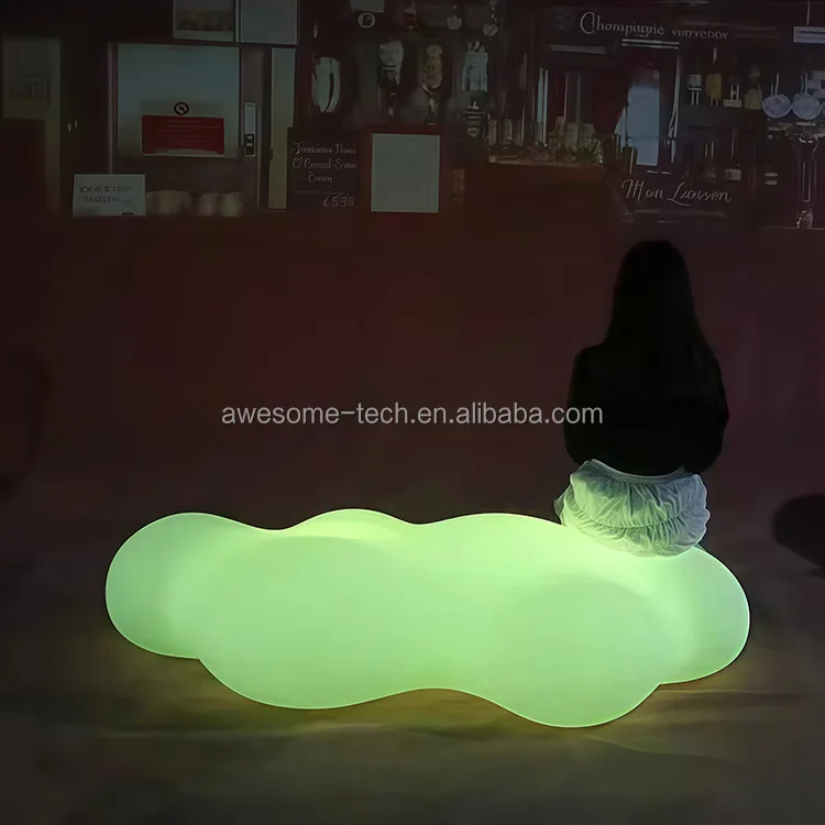 Modern Cloud Motif Portable Outdoor Party Stool Plastic Seat with Light Decoration Cloud Shape Lamp Design