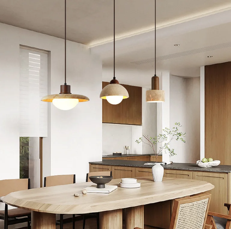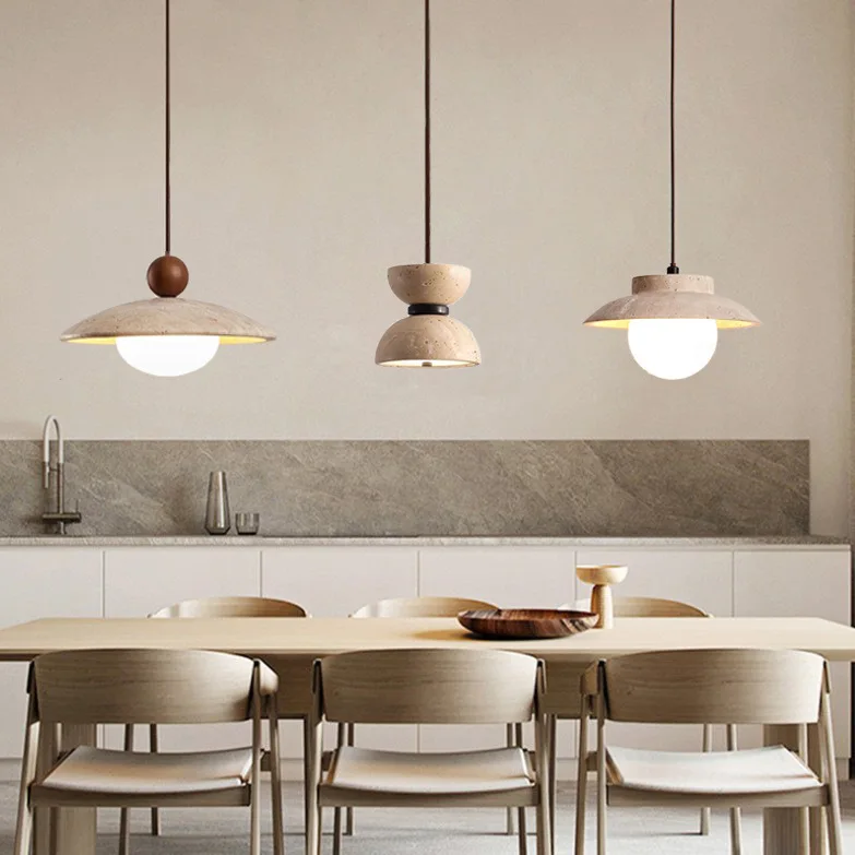 JACKSUN Japanese Cream Style Chandelier Yellow Cave Stone Pendant Light for Restaurant Bar-Nordic Middle Ancient