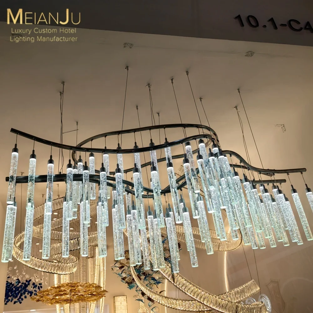 Wedding Hall Chandelier Hotel Hanging Pendant Light Customized Amber Crystal Chandelier Lighting for Lobby