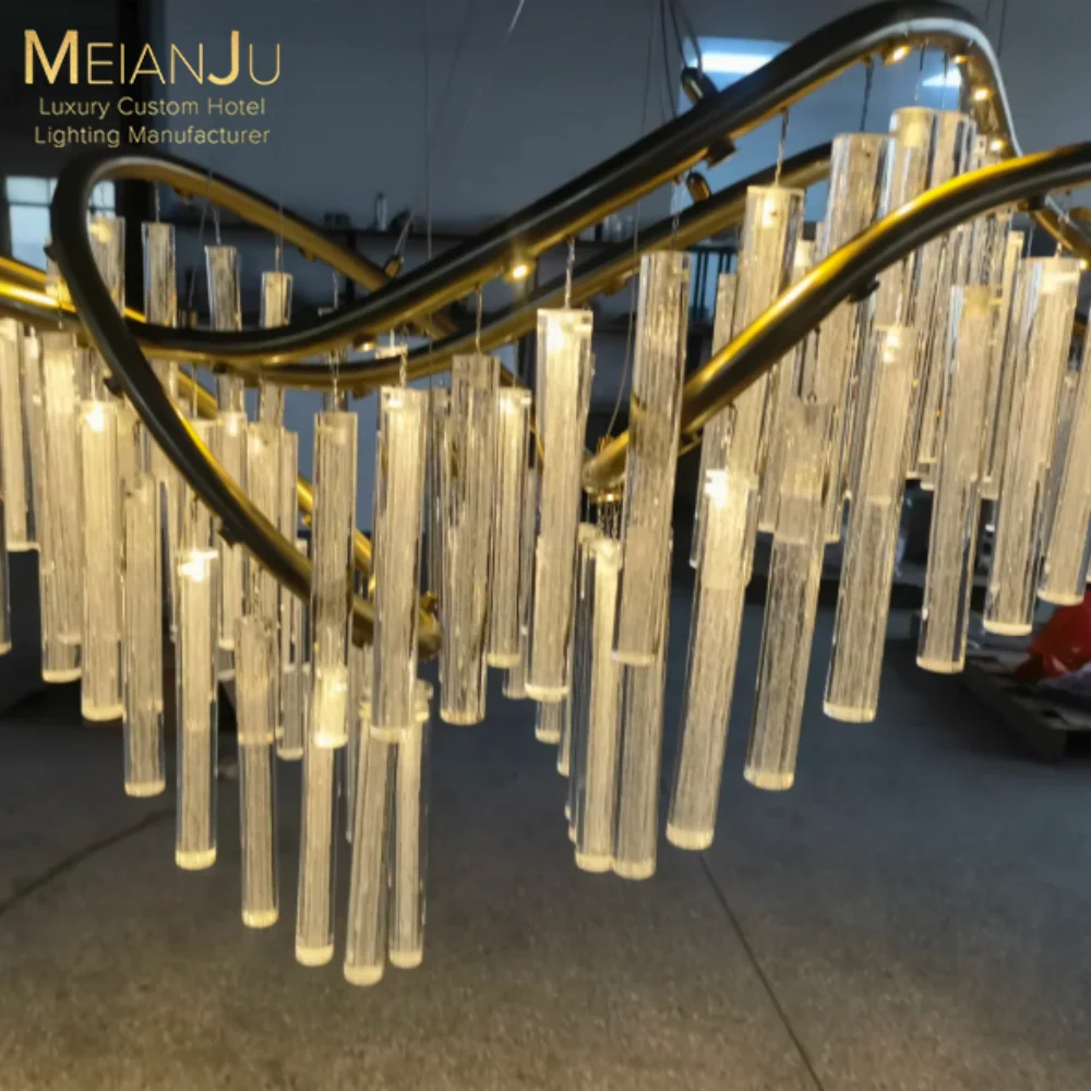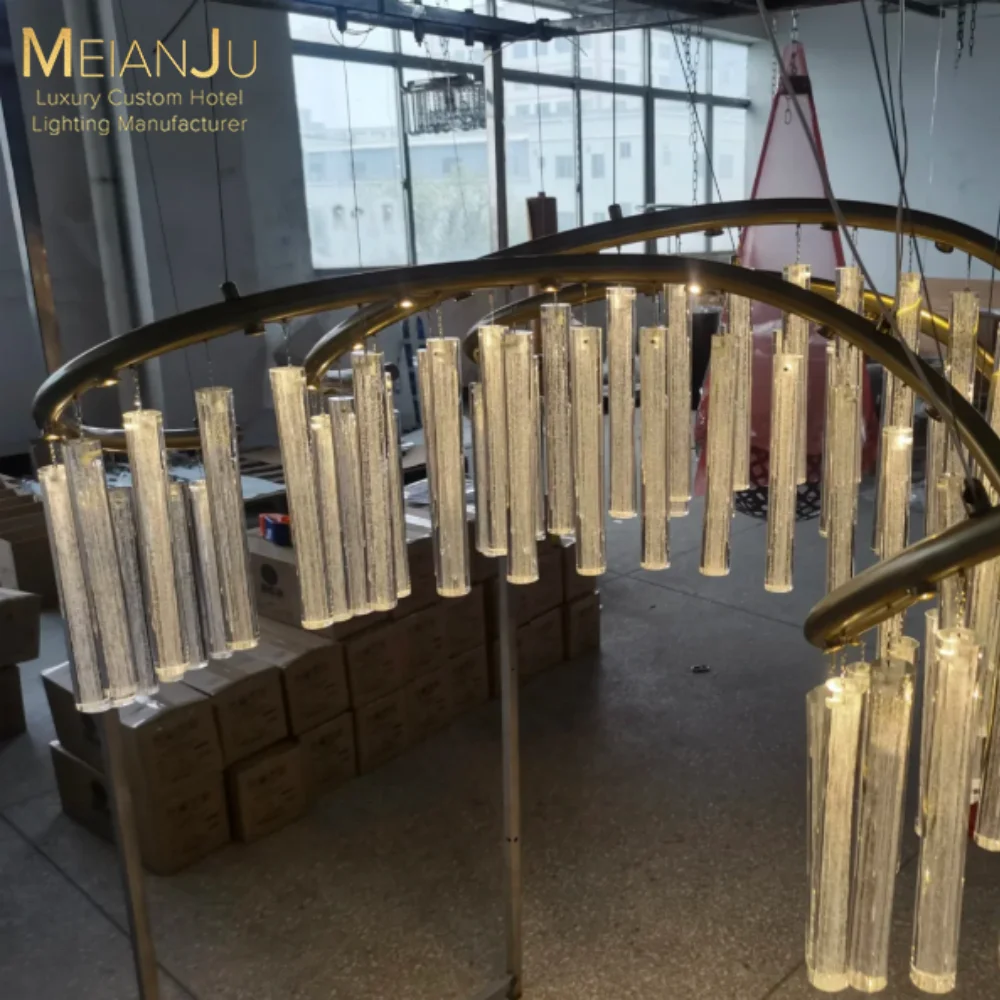 Zeal Lighting Hotel Lobby Hall Decorative Large Hanging Light Customized Long Gold Crystal Elegant Chandelier
