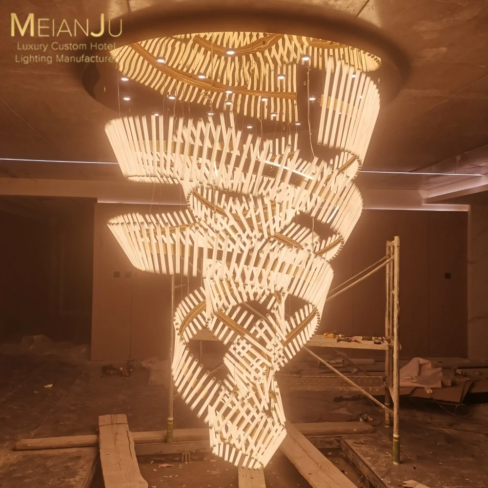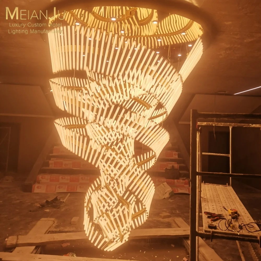 Zeal Lighting Long Stairwell Hanging Pendant Light Staircase Villa Duplex Stair High Ceiling Crystal Chandelier
