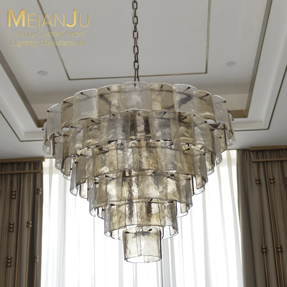 Wedding Hall Chandelier Hotel Hanging Pendant Light Customized Amber Crystal Chandelier Lighting for Lobby