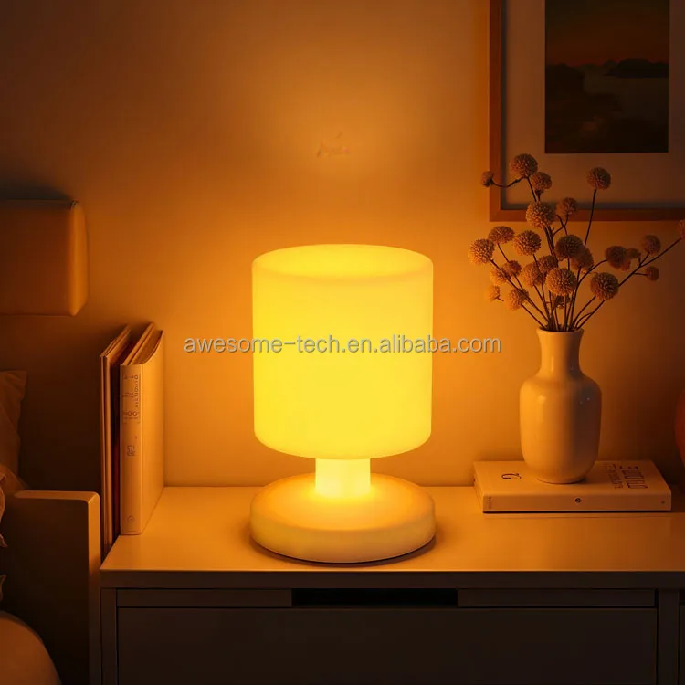 Modern Neutral White LED Desk Lamp Touch Control Dimmable Multicolored Shade Plastic Body for Reading Room Battery Powered