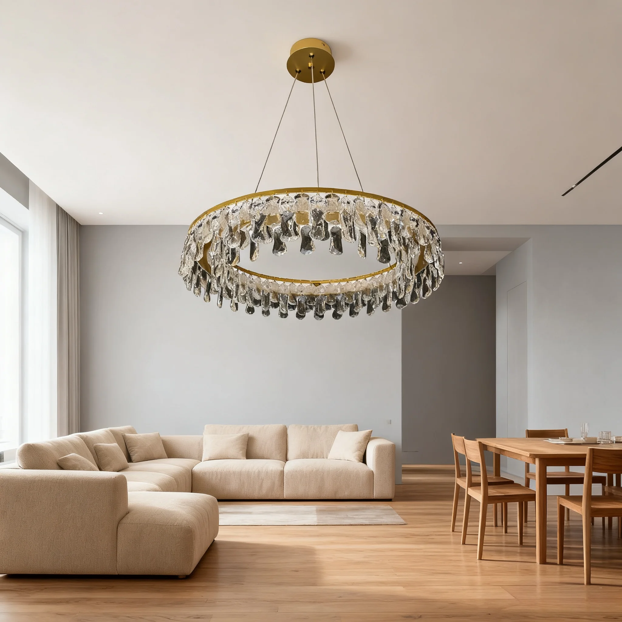 JACKSUN Golden Crystal Chandelier Luxury Hanging Pendant Lamp Living Room Chandelier for Home Dining Bedroom Pendant Light