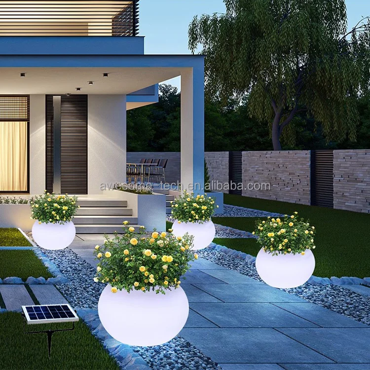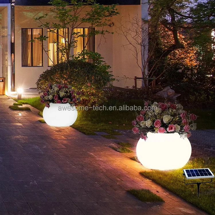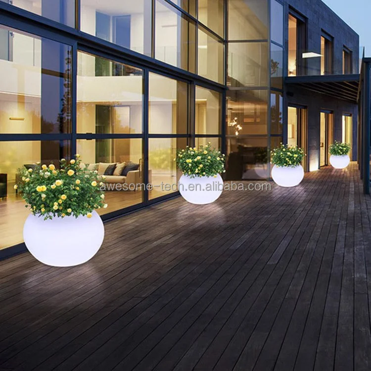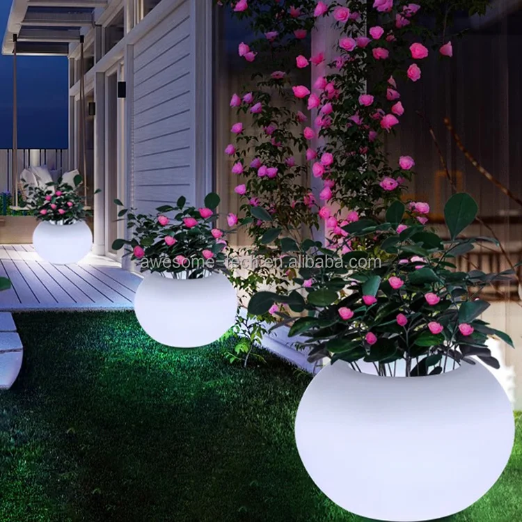 Smart Remote Control 16-Color LED Illuminated Modern Round Ball Shaped Flower Vase Pot Trays for Planters and Garden Decor
