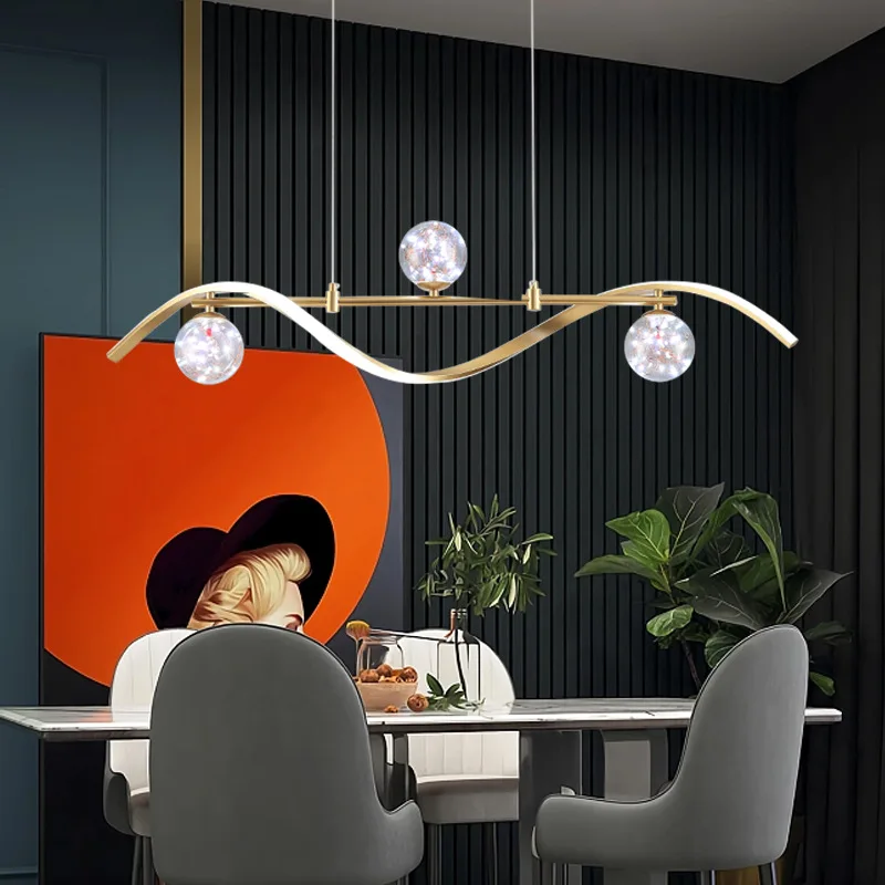 JACKSUN Nordic Modern Star Restaurant Chandelier Strip Restaurant Cafe Bar Aluminum Long Hanging LED Pendant Lamp