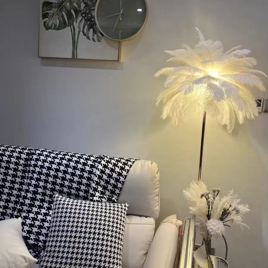 JACKSUN Feather Floor Lamp Living Room & Bedroom Luxury Creative Decorative Floor Feather Lamp