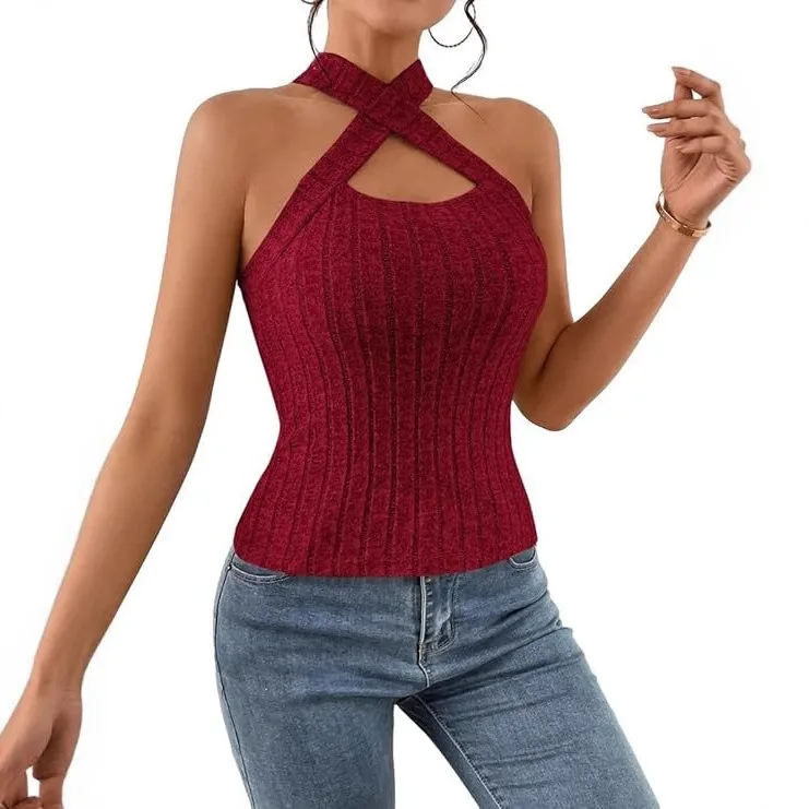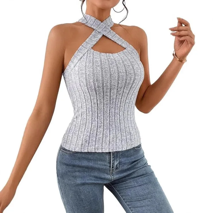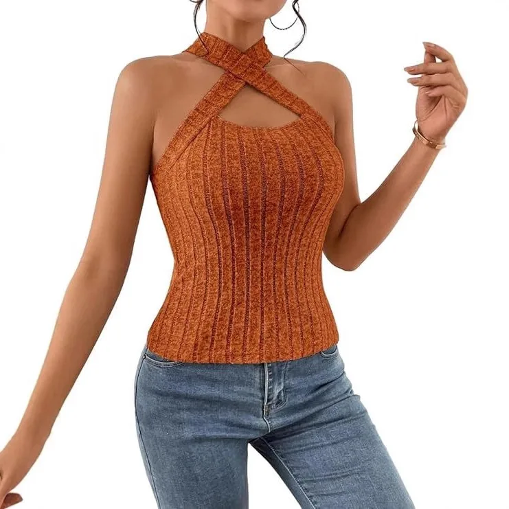 2025 Summer New Slim Fit Cross Hanging Neck Sleeveless off Shoulder Women's Sexy Vest