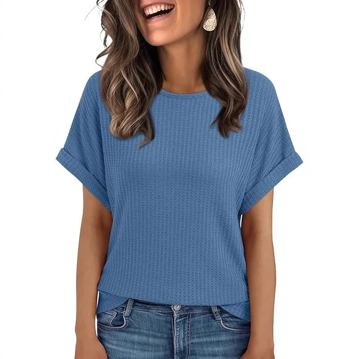 2025 Summer Women's Fashion and Leisure New Solid Color Short Sleeved T-shirt