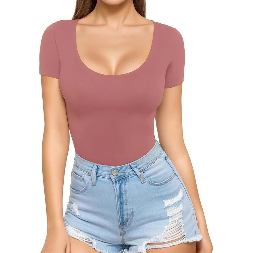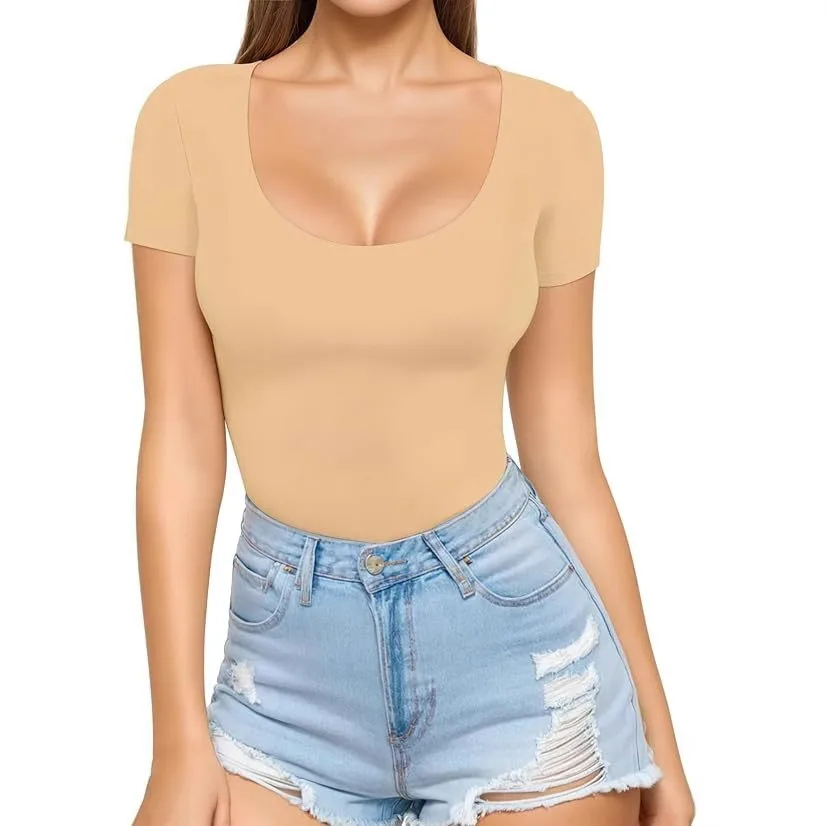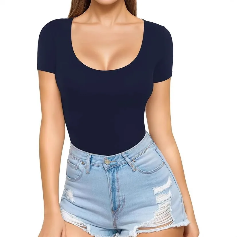 2025 Summer Sexy Women's Low Round Neck Short Sleeved Casual Slim Fit T-shirt