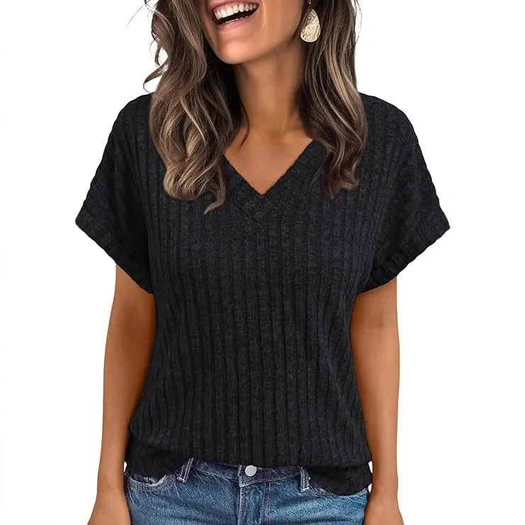 Summer Women's Short Sleeved Fashionable Casual V-neck Pullover T-shirt