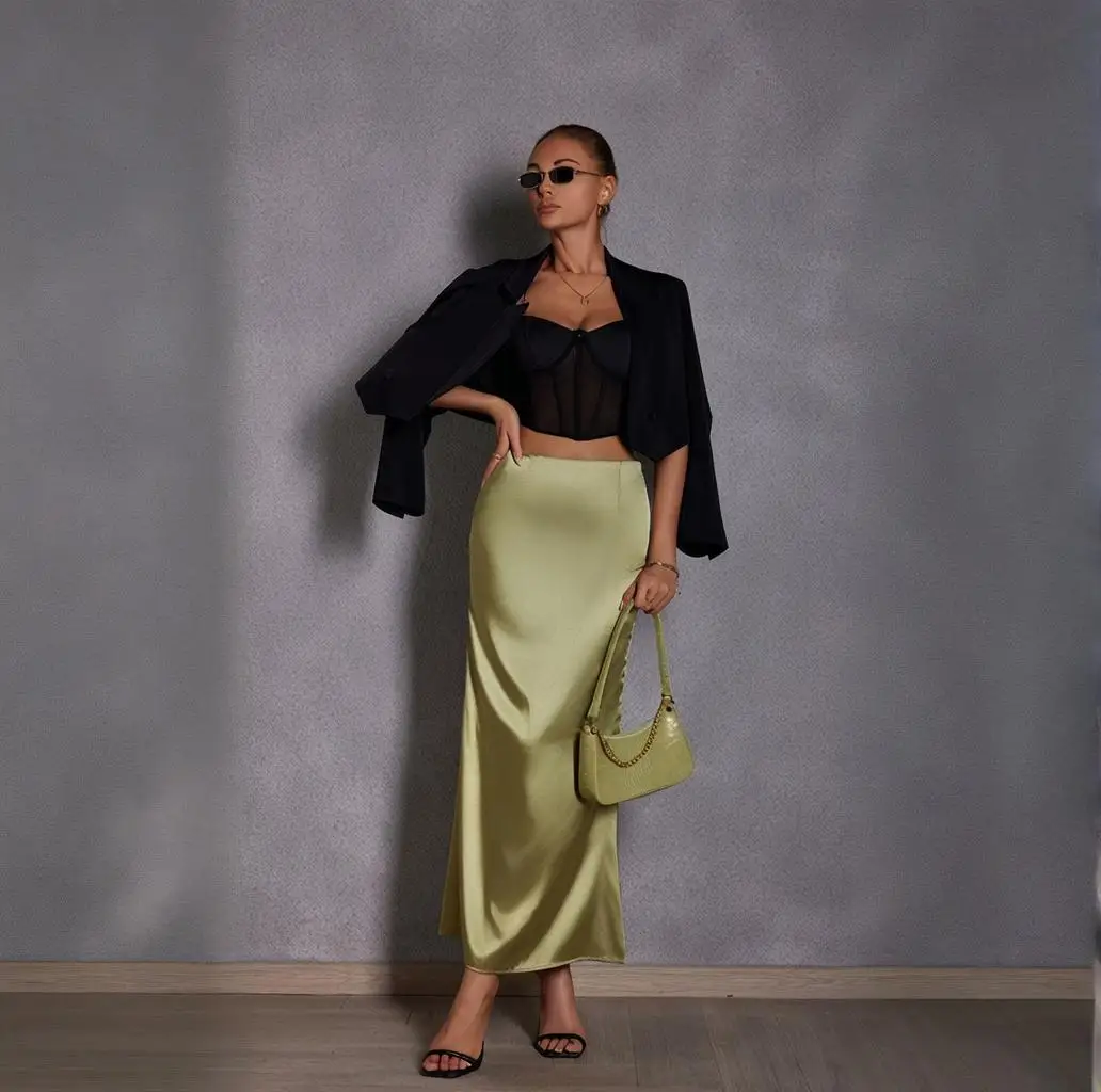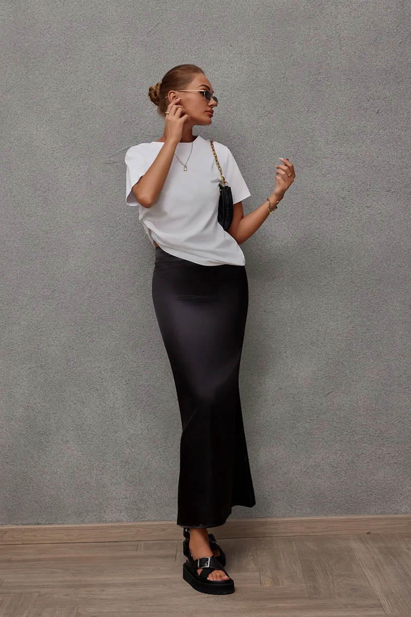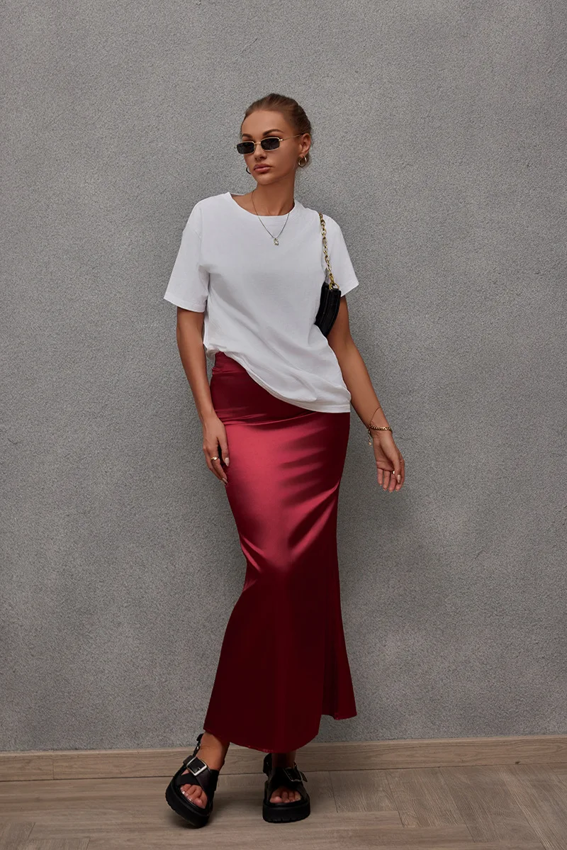 2025 Spring and Summer New Fish Tail Satin Fashion Casual Half Skirt