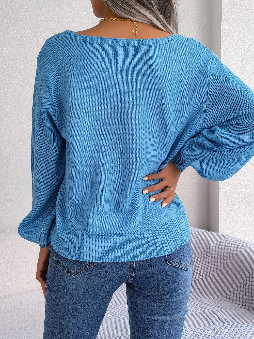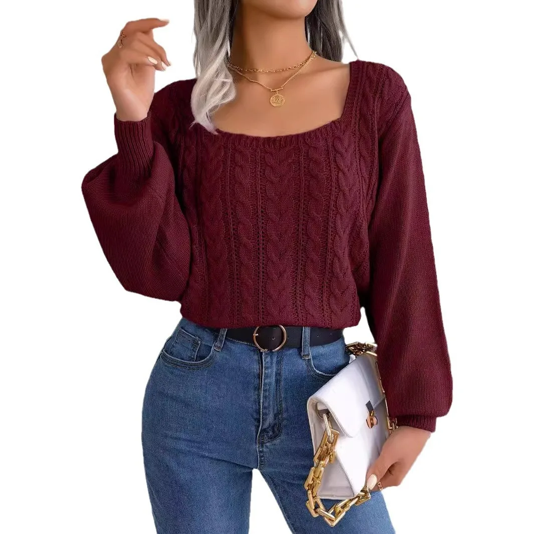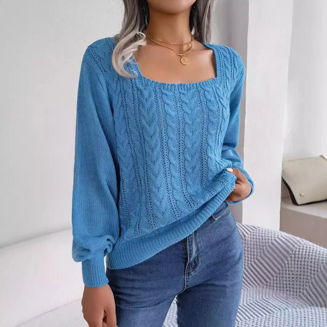 casual square neck Fried Dough T Women's Sweater