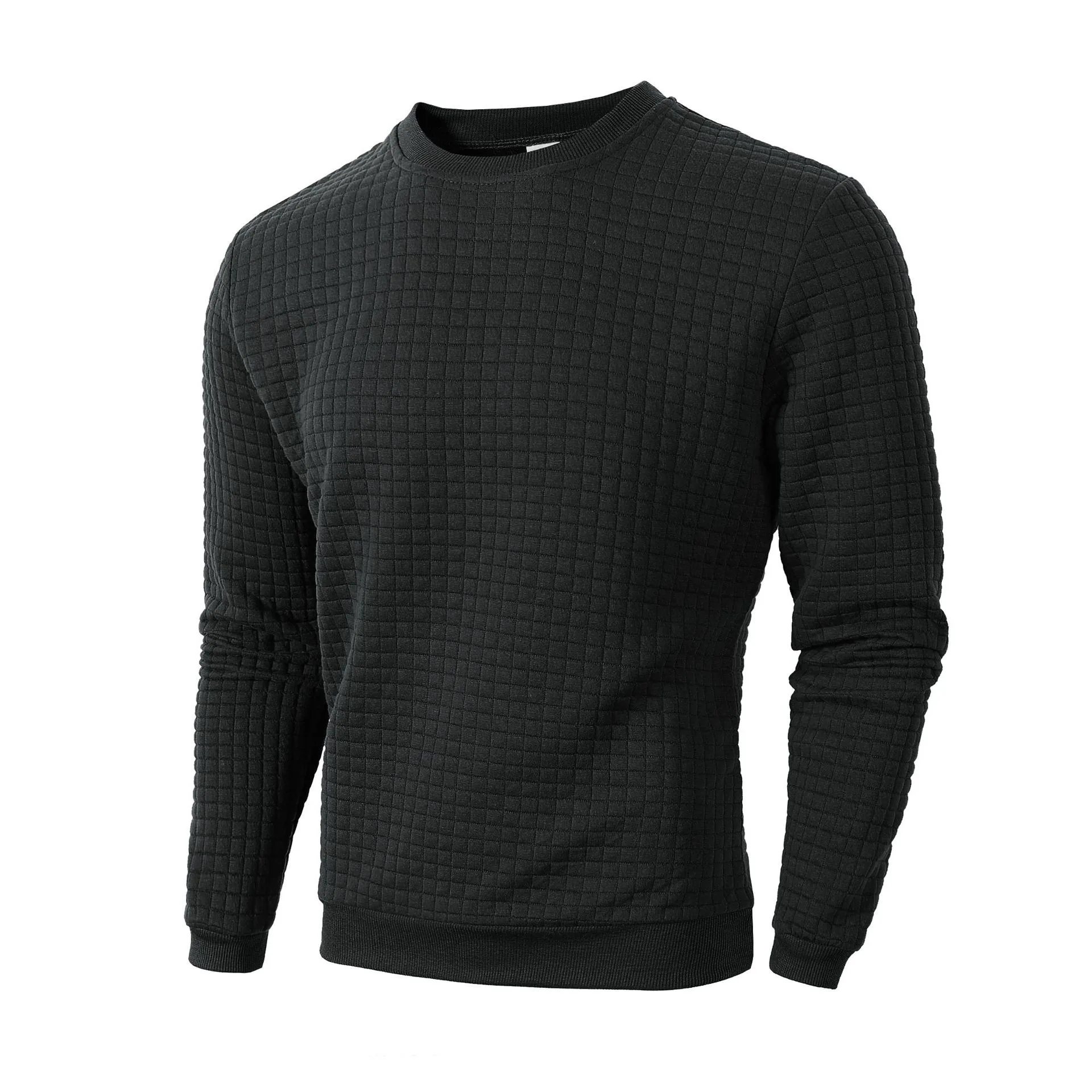 Autumn and Winter Men's Slim Fit Round Neck Long Sleeved square Grid Personalized Casual Polo Shirt