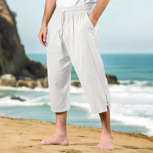 Summer Men's Drawstring Elastic Waist Straight Tube Comfortable and Breathable Casual Pants