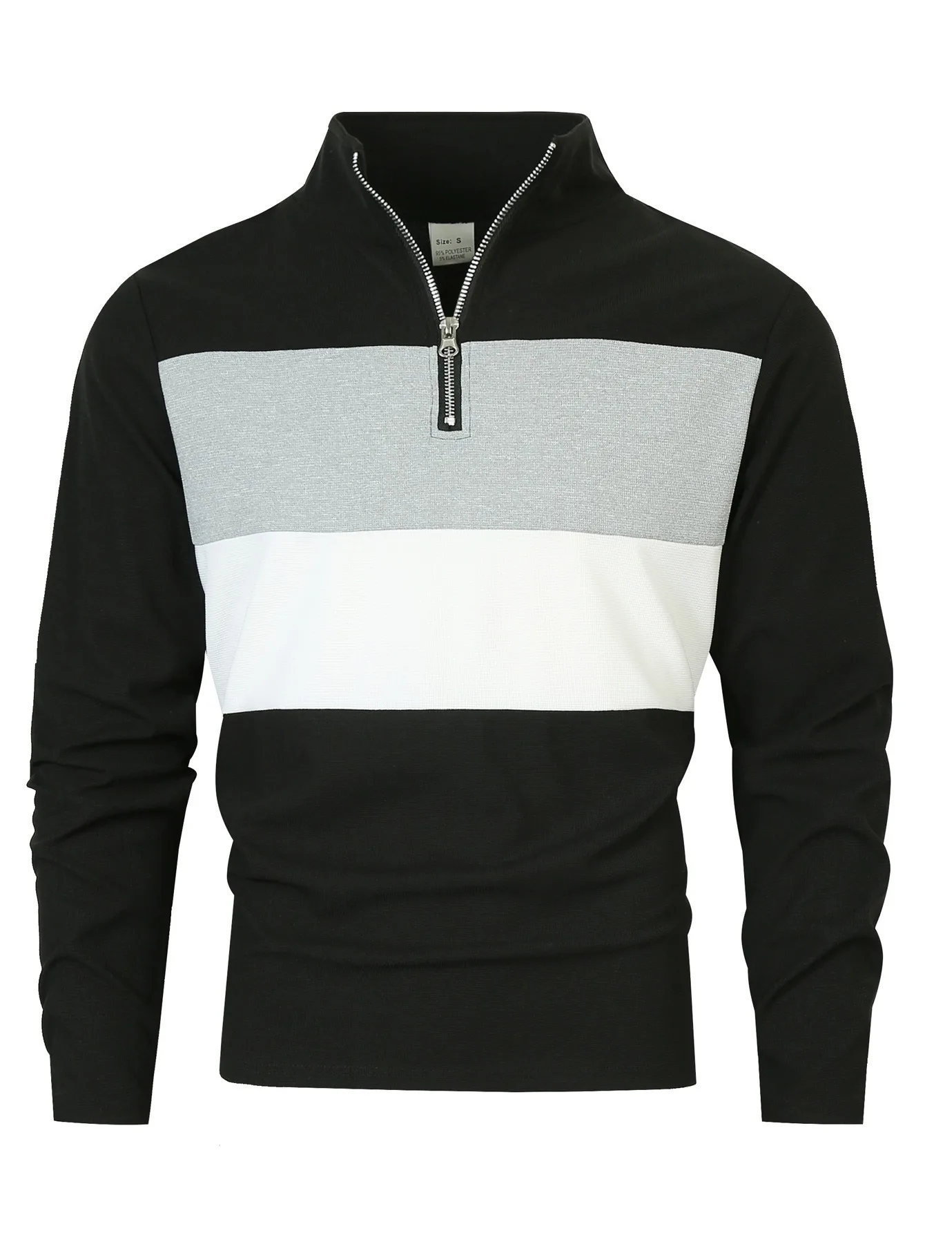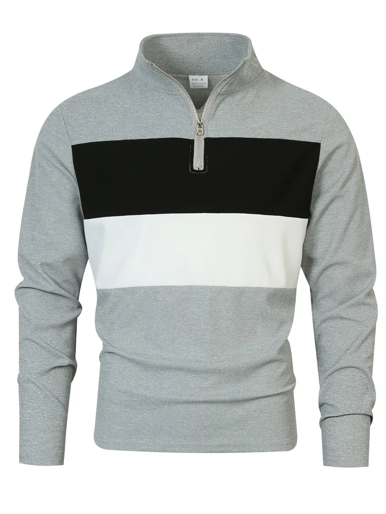 Spring and Autumn Retro Fashion Men's Zipper Collar Long Sleeve Polo Shirt