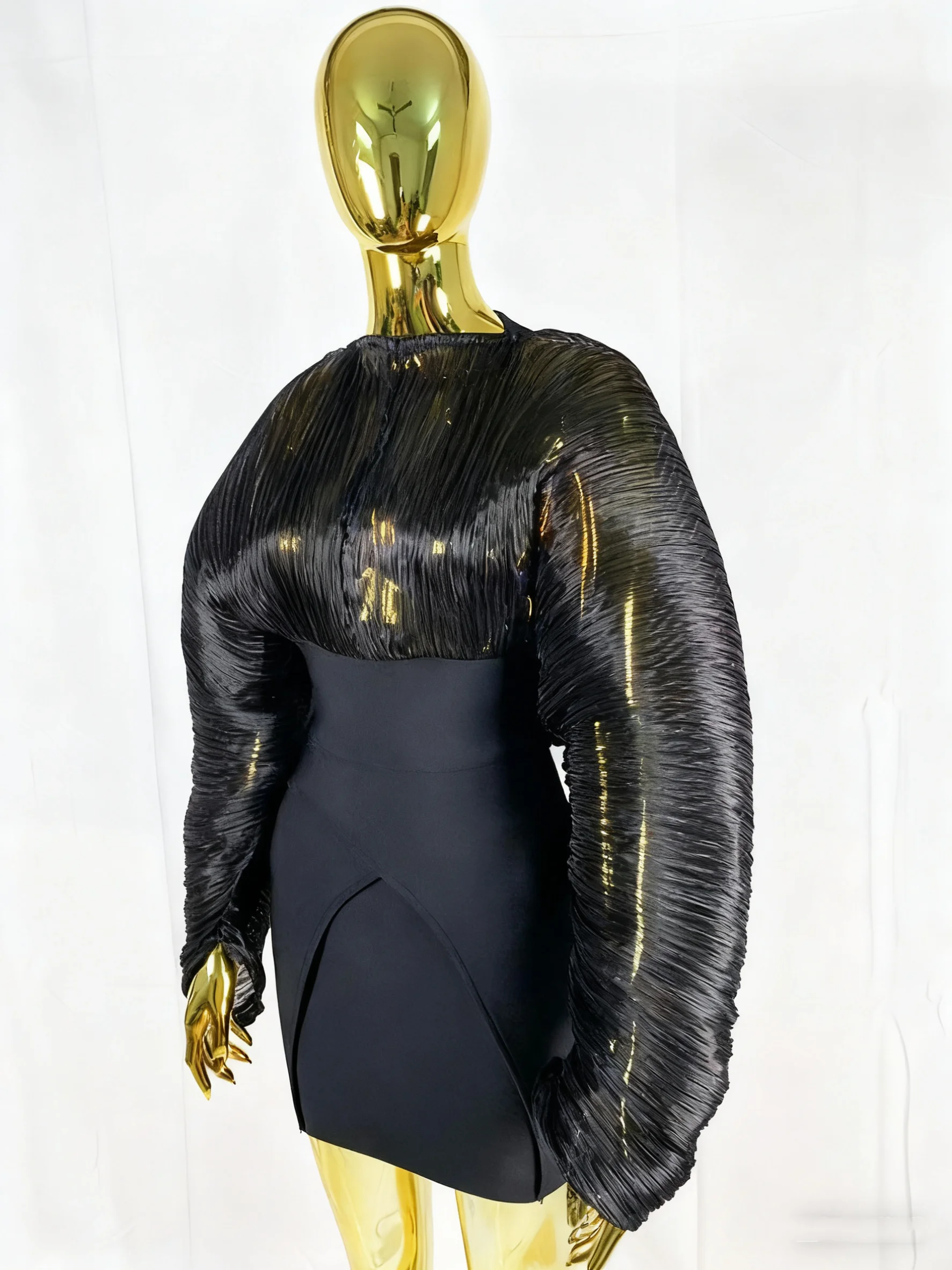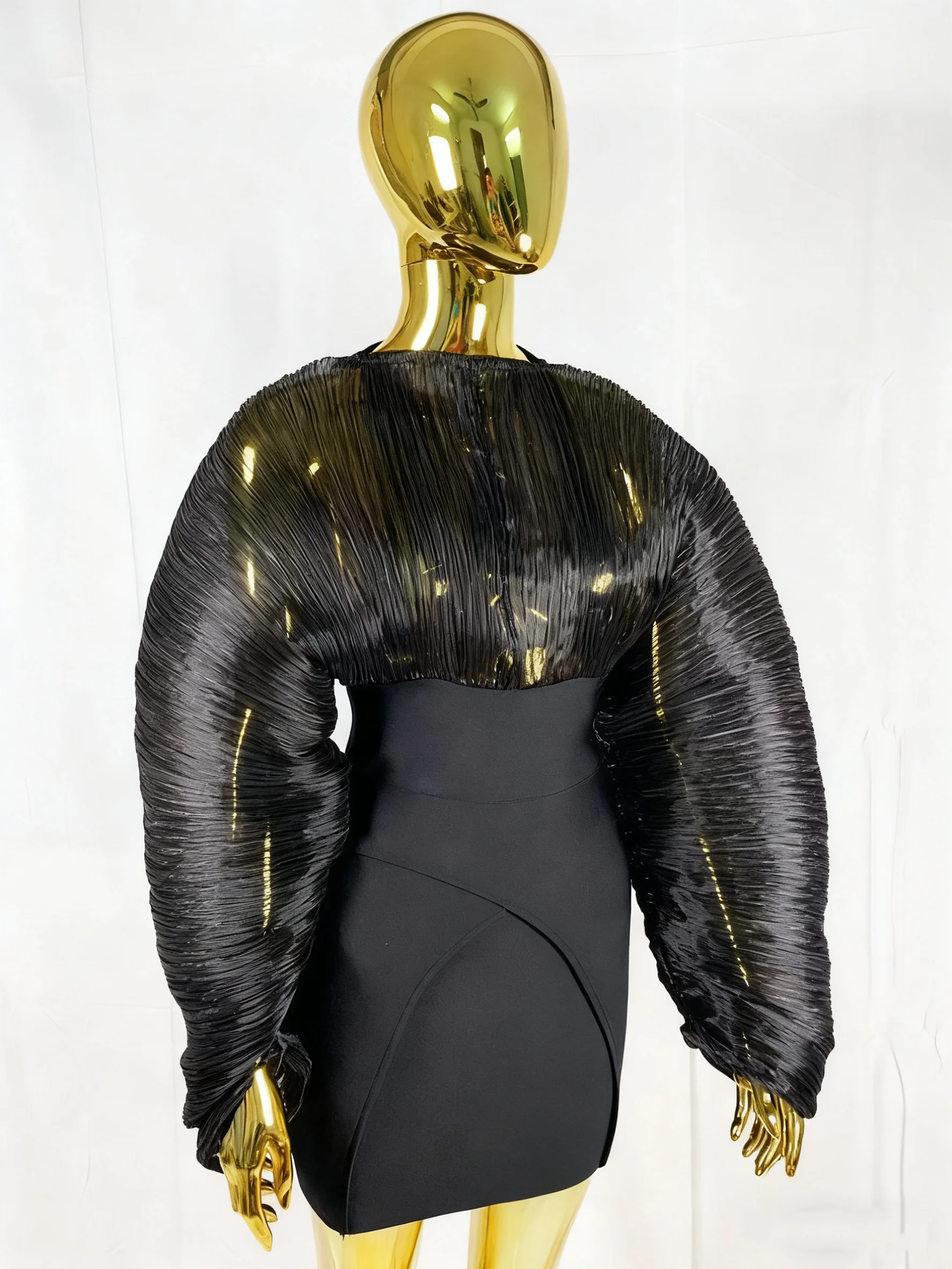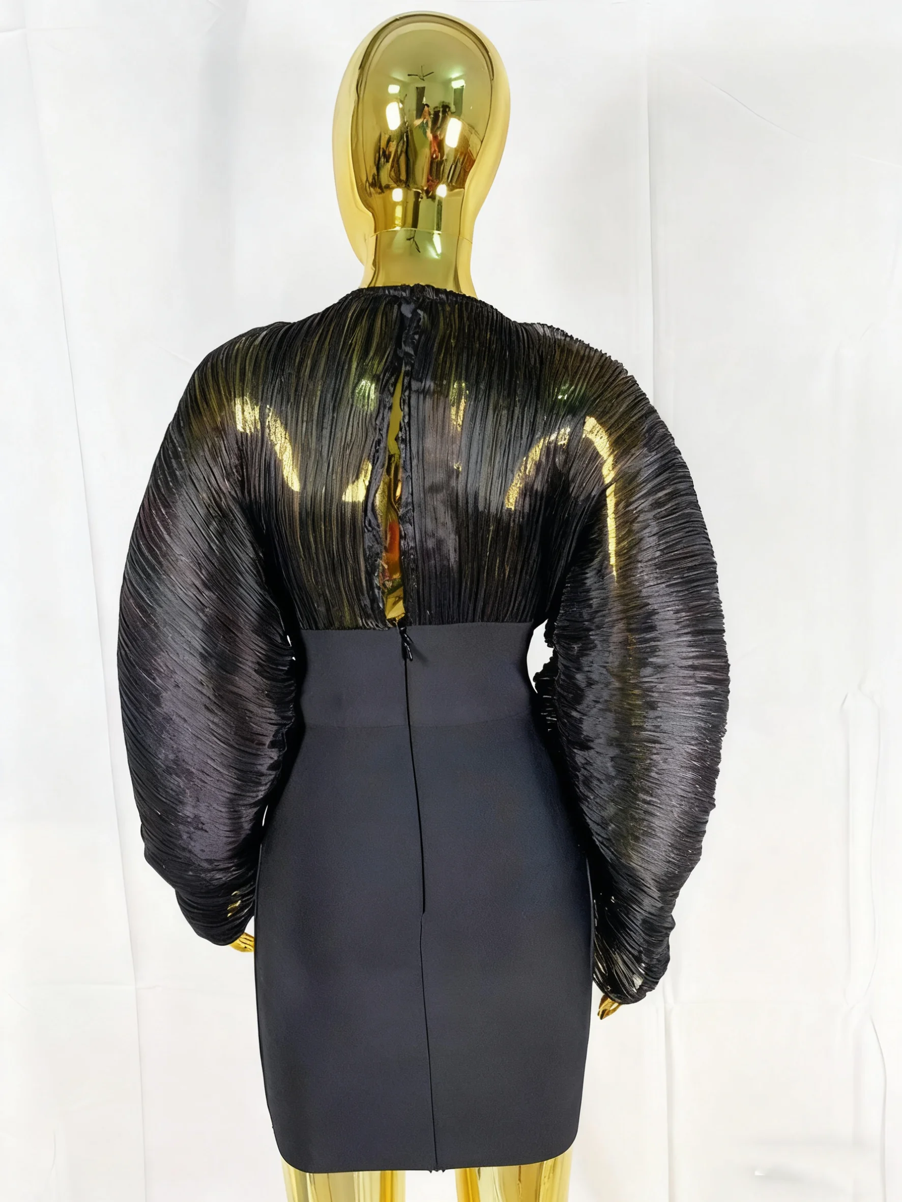 GX0210 Luxury Quality Women Clothes Boutique O-Neck Yarn Super Big Bat Long Sleeve Bandage Mini Dress Sexy Party Evening Dresses
