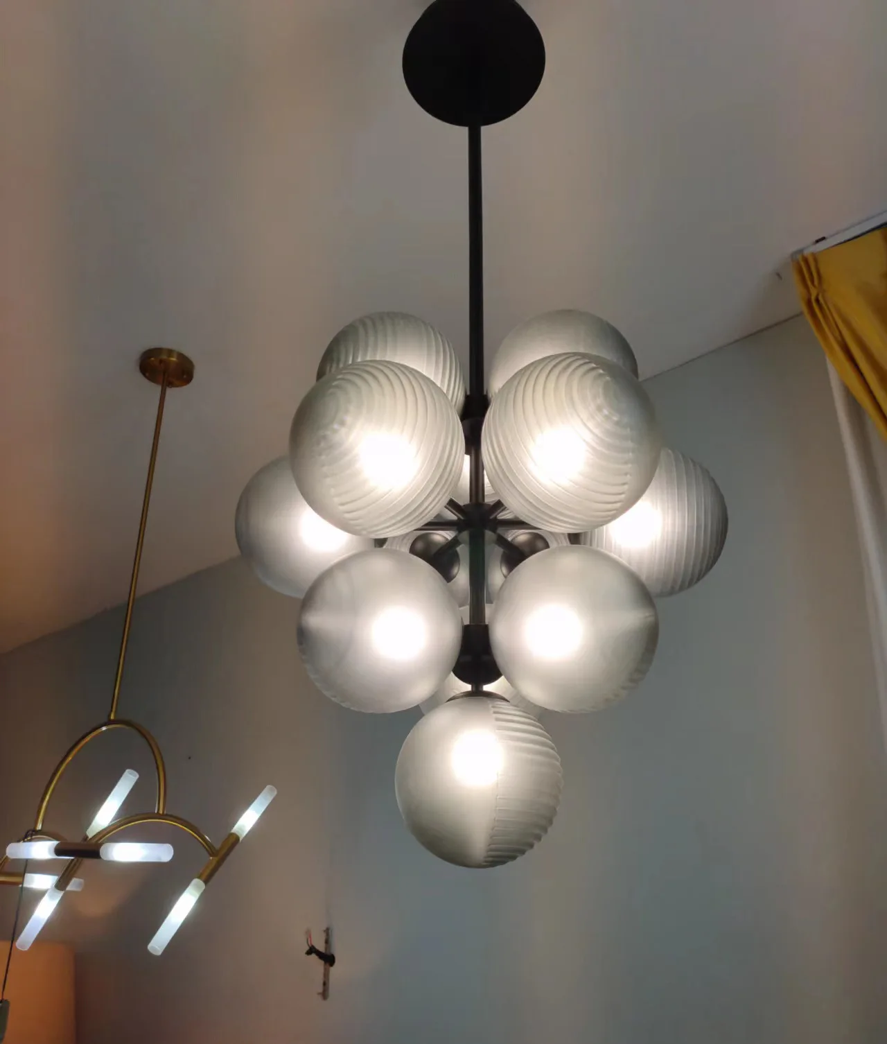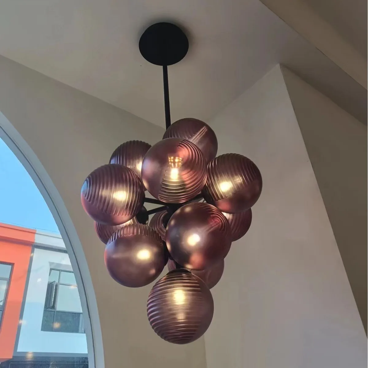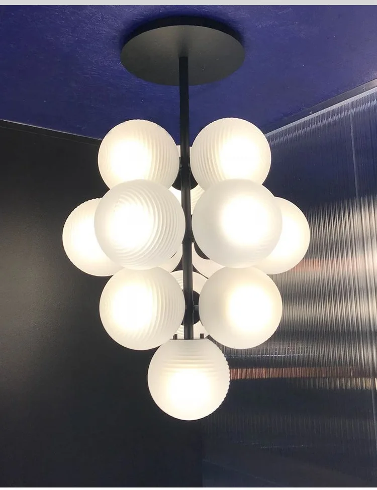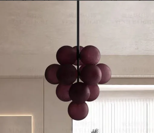 JACKSUN High-End Purple Ripple Ball Magic Bean Pendant Light Bedroom Living Room Grape Glass Pendant Light