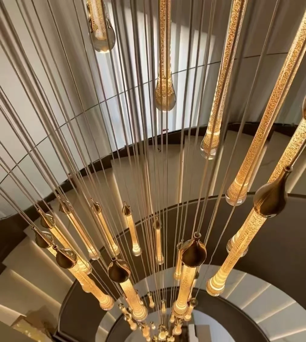 Zeal Lighting Long Stairwell Hanging Pendant Light Staircase Villa Duplex Stair High Ceiling Crystal Chandelier