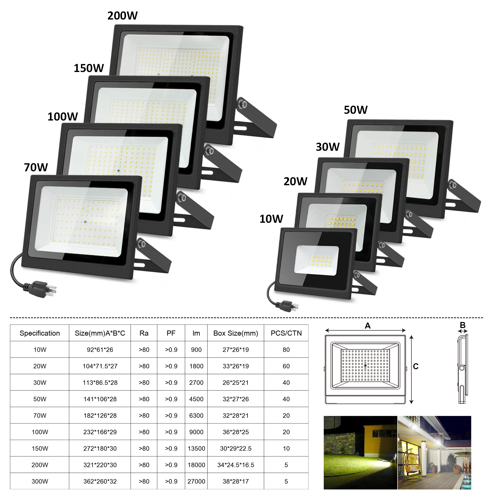 Vertak Factory Supply IP65 Outside Area Light 10W 20W 30W 50W 100W 150W 200W LED Flood Lights for Basketball Court