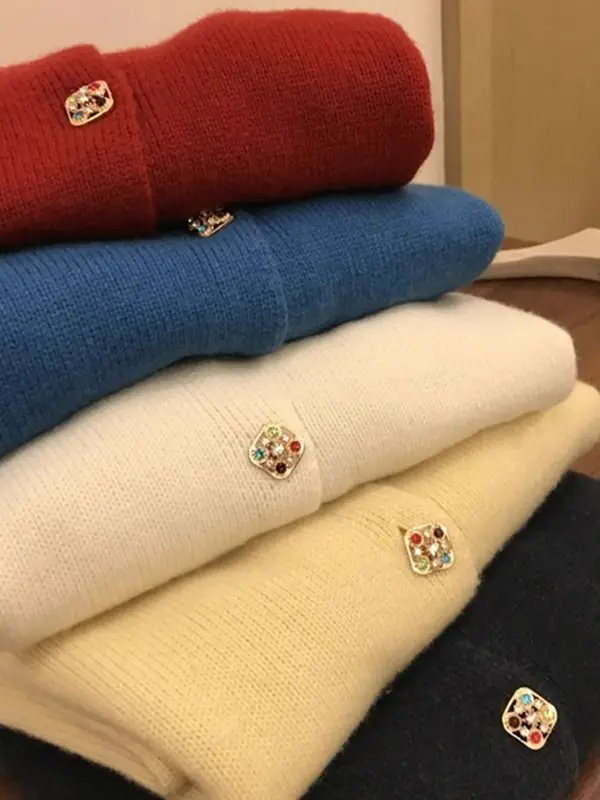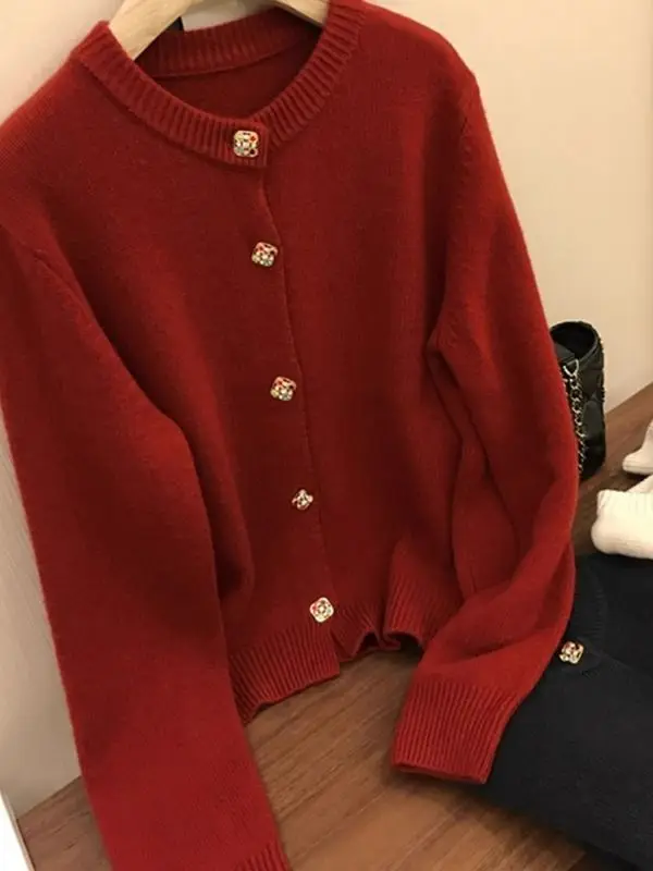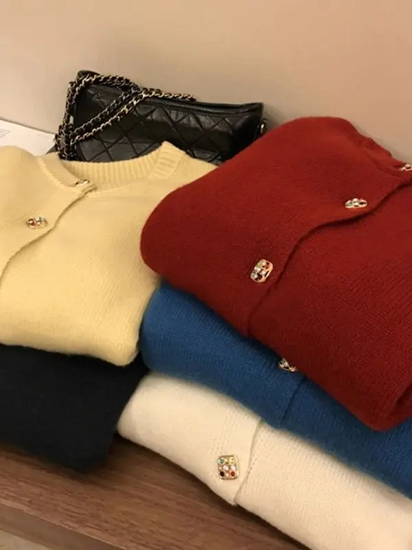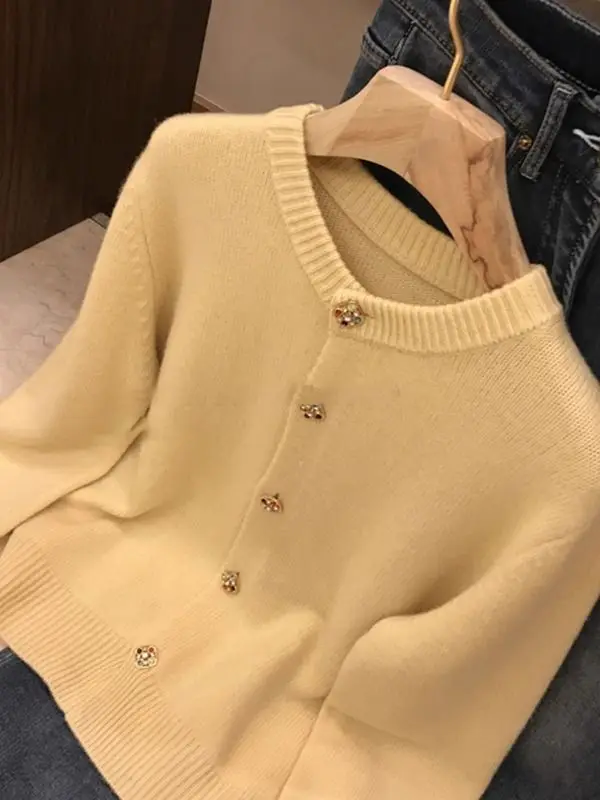 Spring Autumn Korean Style Cardigan Coat V-neck Button Loose Gentle Style Sweater Solid Color Soft Cardigan Knitted for Women