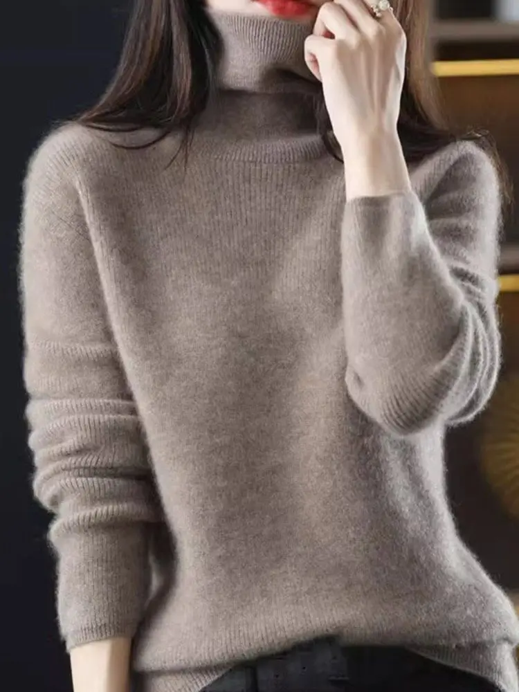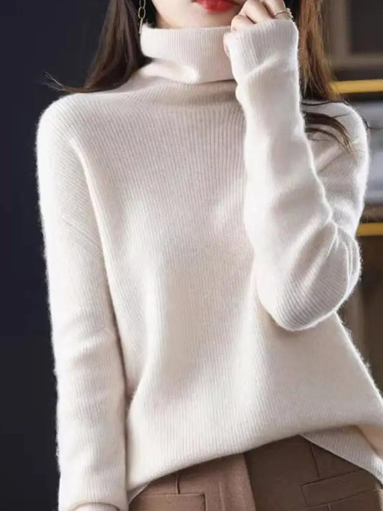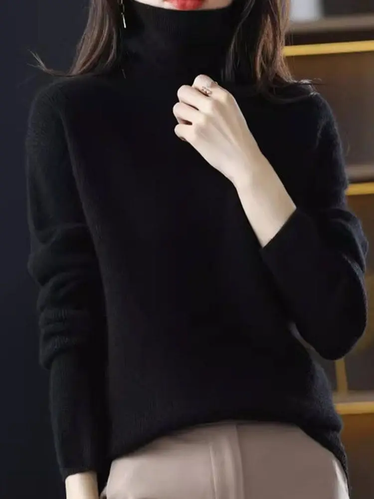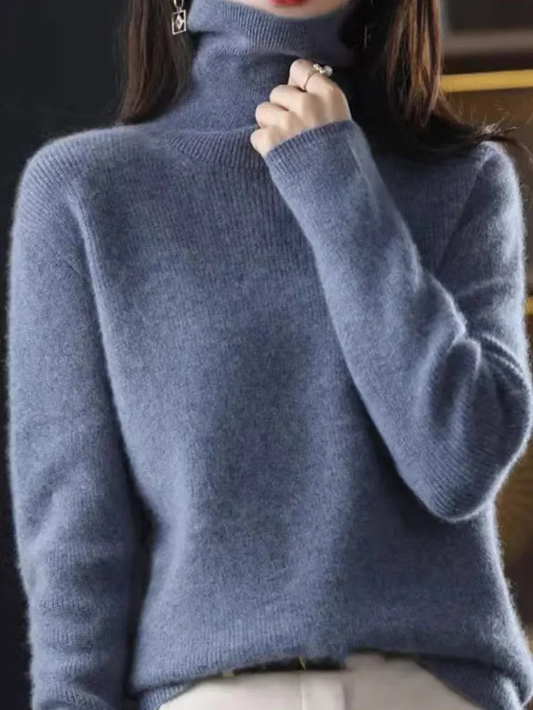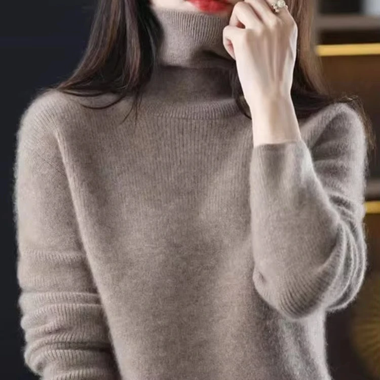 Autumn Winter High Collar Pullover Thickened Slim Bottom Shirt Sweater Button Sleeve Top Knitted Pullover Sweater for Women