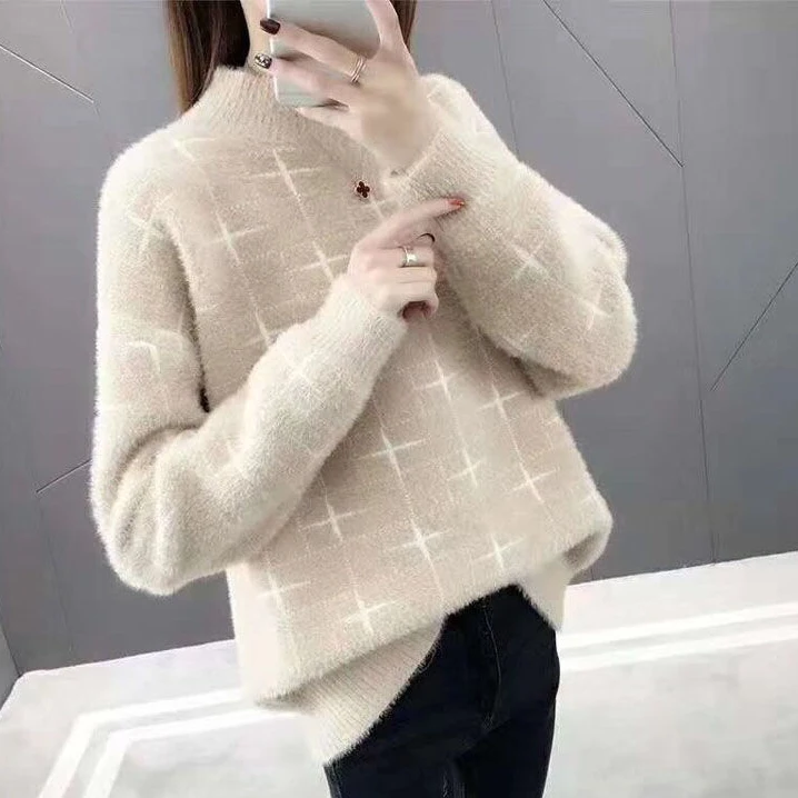 Women's Hot-selling Fall Sweater High Quality Loose Turtleneck Top Solid Color Knitted Pullover Sweater for Women