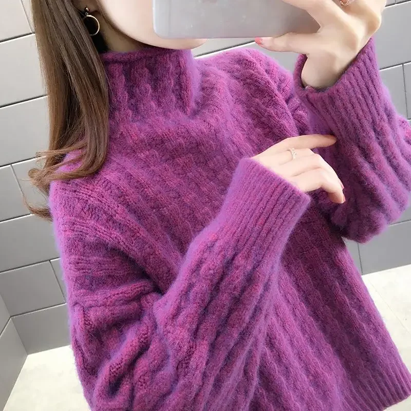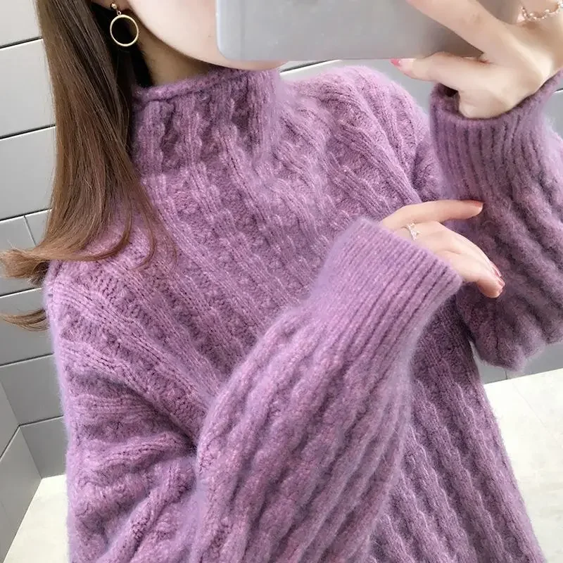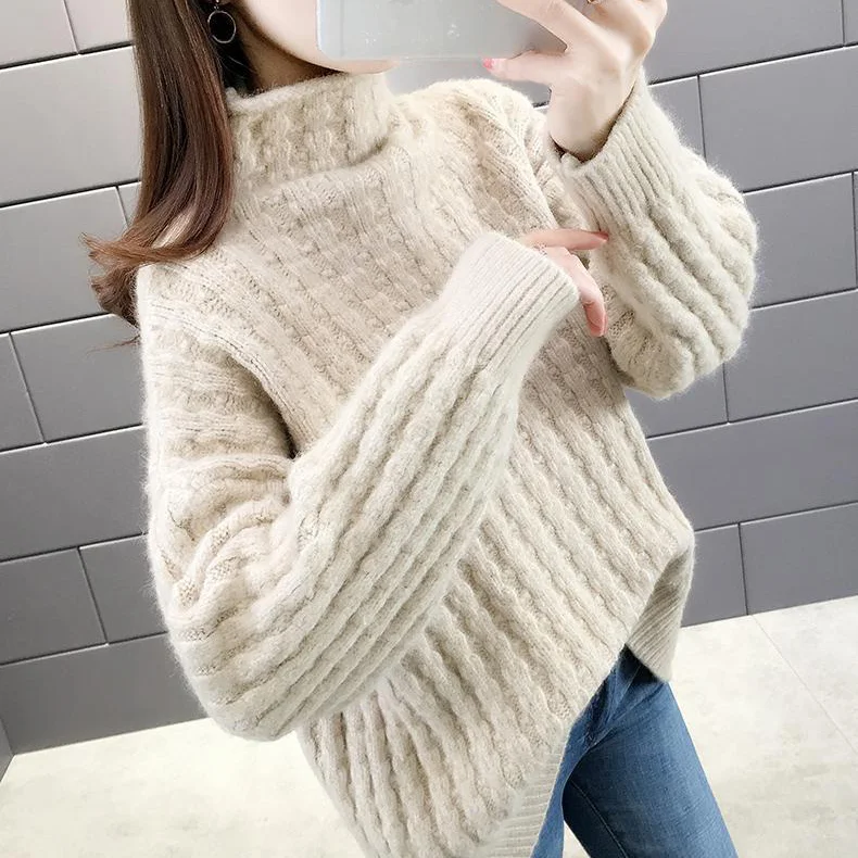 2024 Fashion Autumn and Winter Loose Sweater Turtleneck Oversize Thick Top Knitted Pullover Sweater for Women
