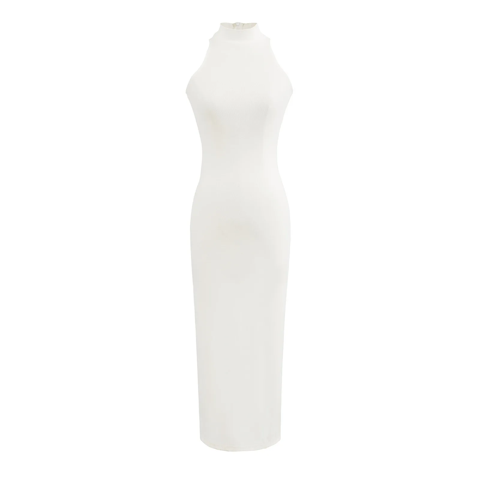 Women's Basic Ribbed Knit Sleeveless Midi Tank Dress Wholesale Crewneck Knit Bodycon Simple Plain Dyed