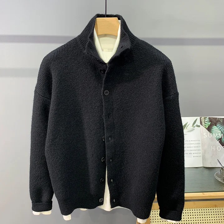 Factory Sell Thick Korean Style Lazy Sweater Men's Winter Fashion Half Turtleneck Knitted Cardigan Solid Color Jacket for Men