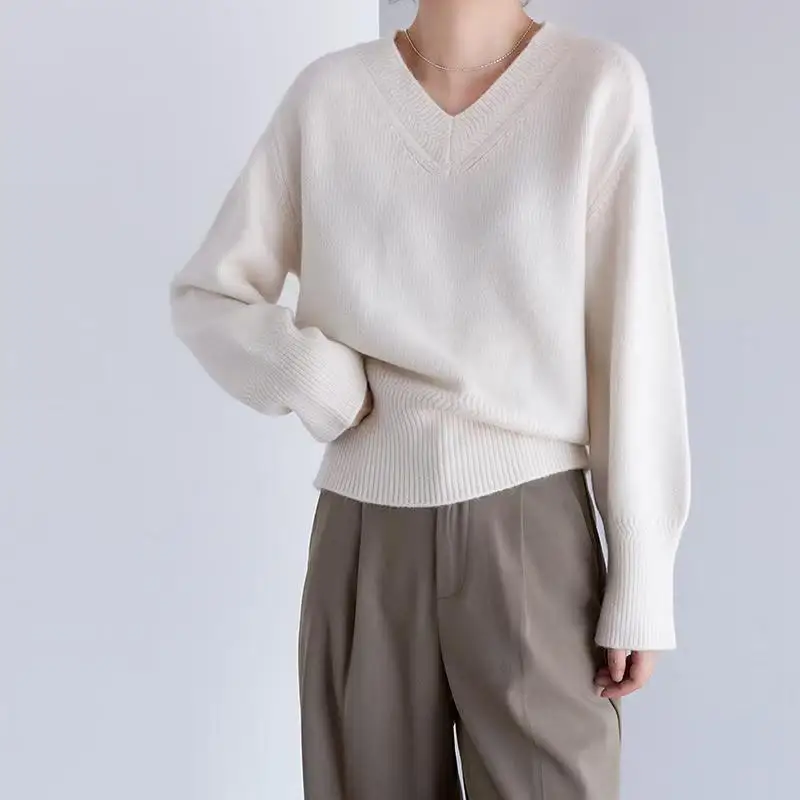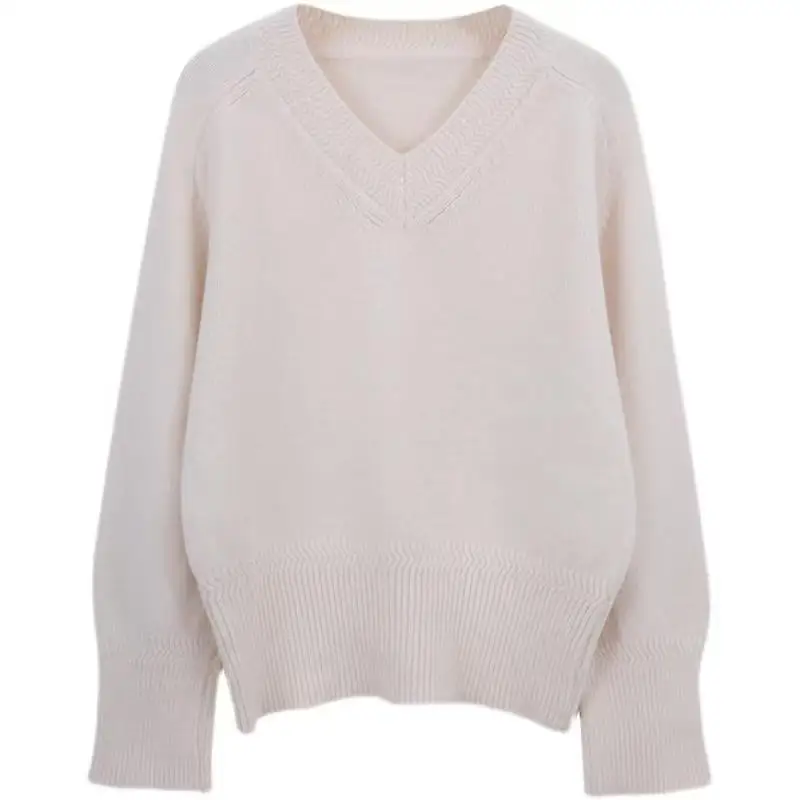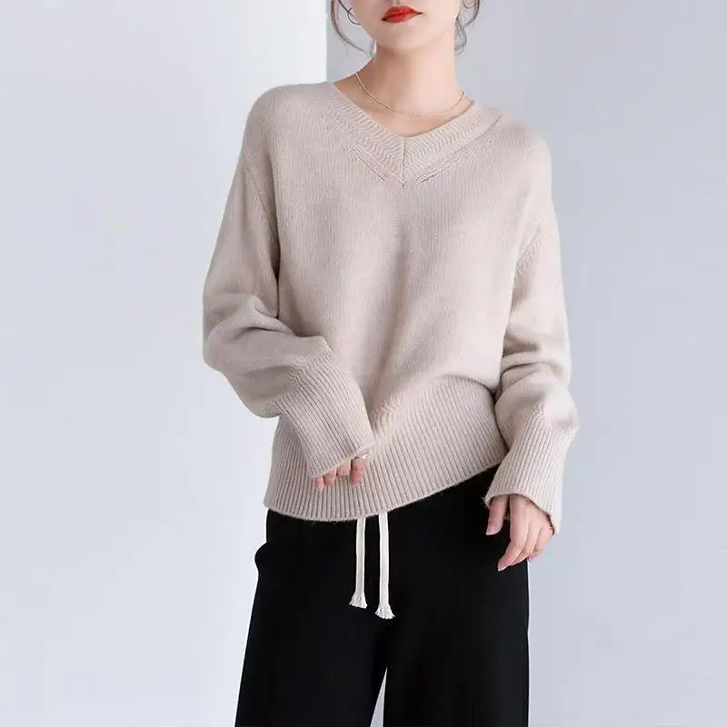 Women's V-Neck Casual Pullover Long Length Embroidered Knitwear Loose Fit Spring Fall Cross-Border Export Style Sweaters