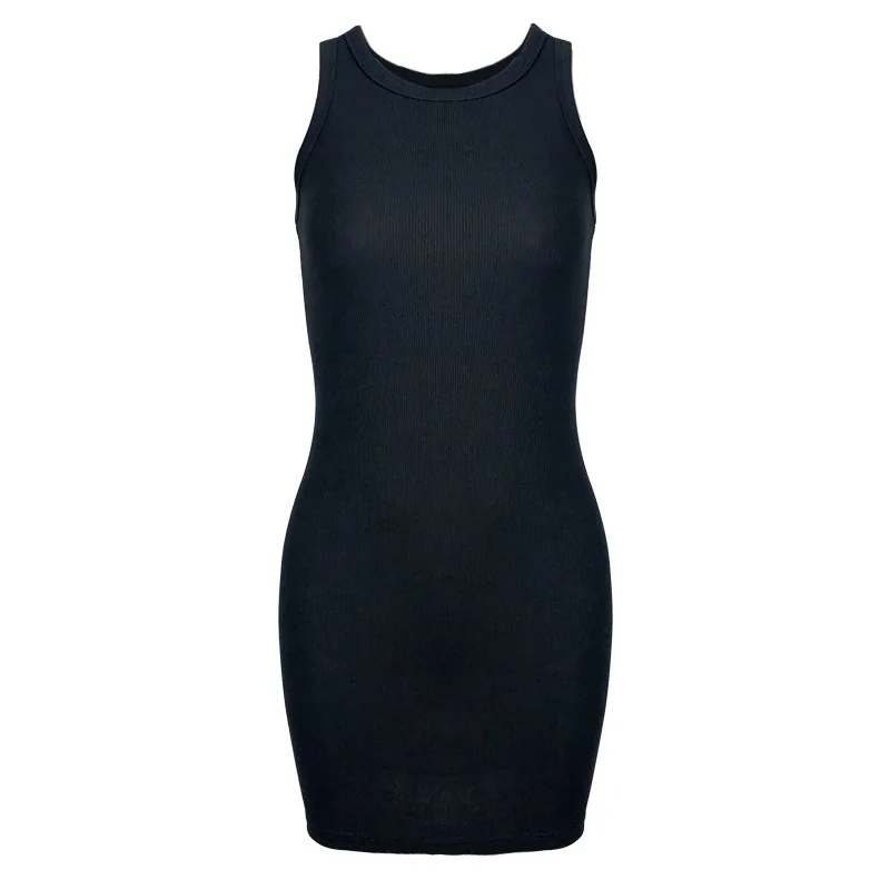 Women's Fashion Solid Color High Waist Dress Sexy Sleeveless Rib Knit Base for Fitness Sports Summer Streetwear Style