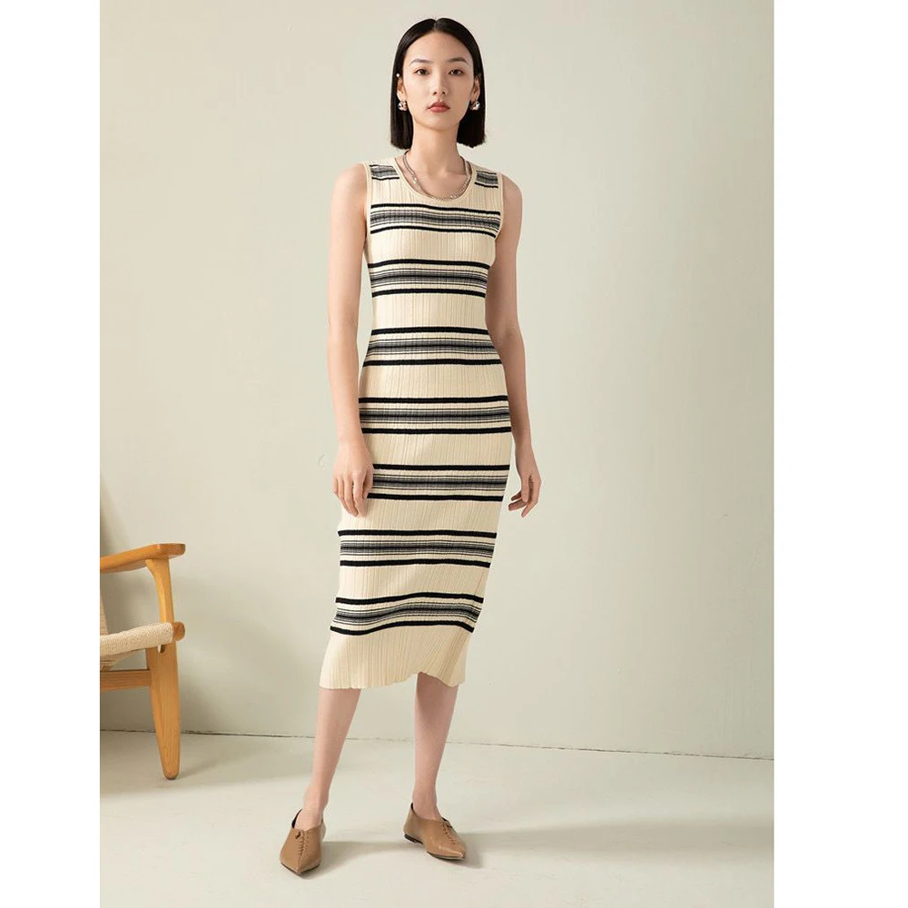 Summer Striped Knitted Dress Women's Spring and Summer Temperament Sleeveless Knitted Dress