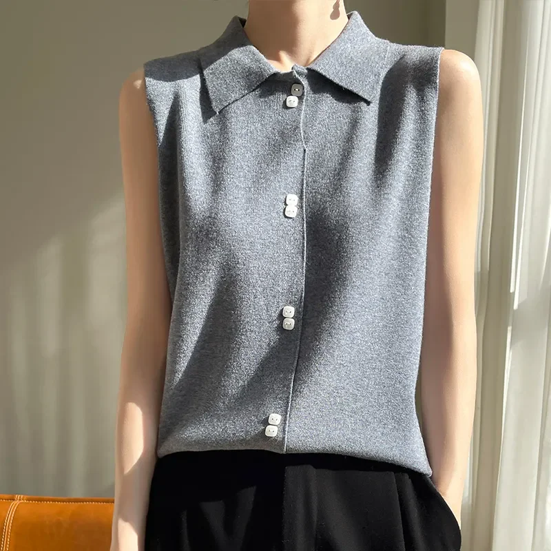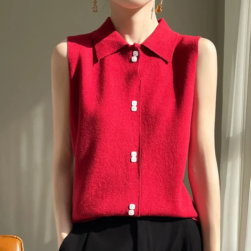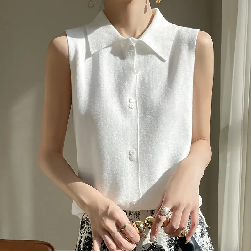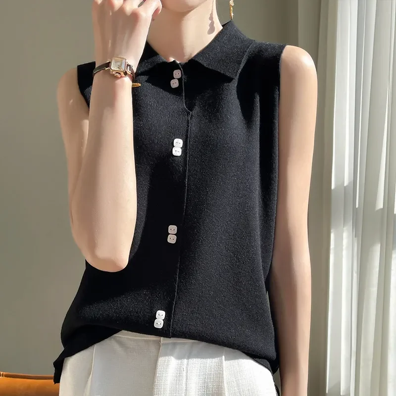 2024 Spring New Fashion Knitted Vest POLO Neck Sleeveless Top Knitted Vest Women