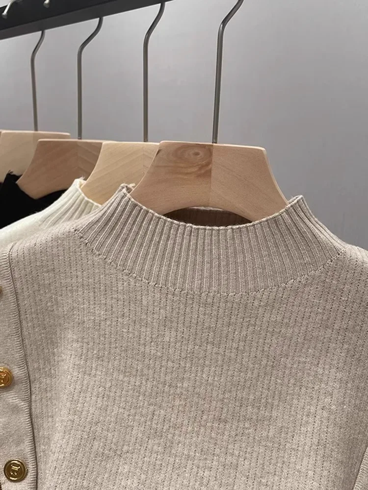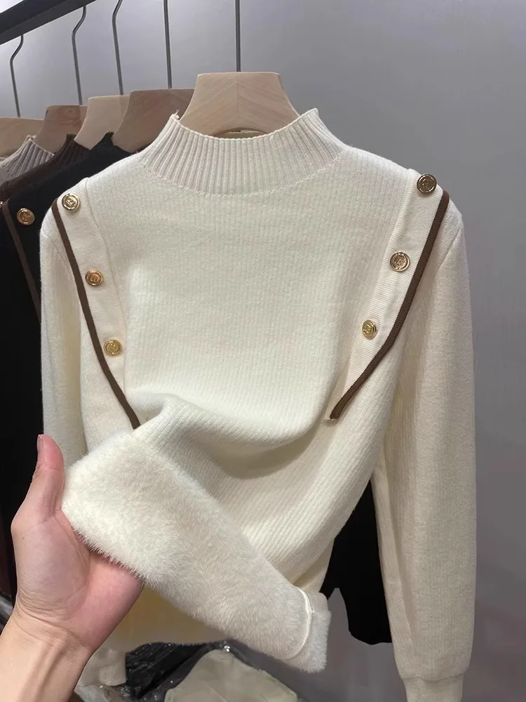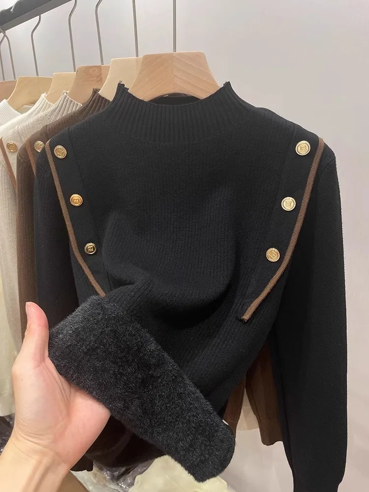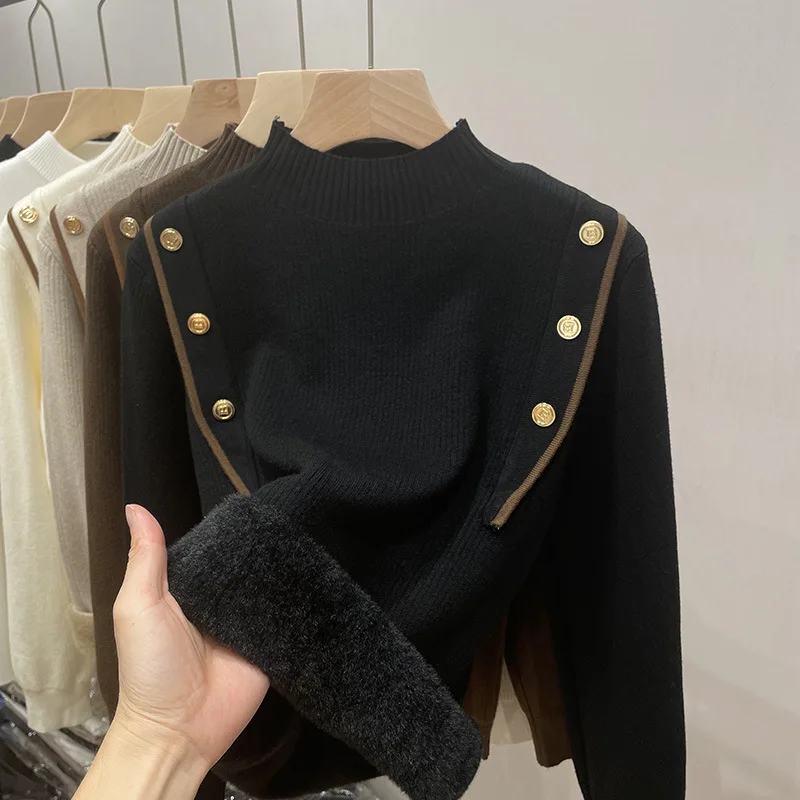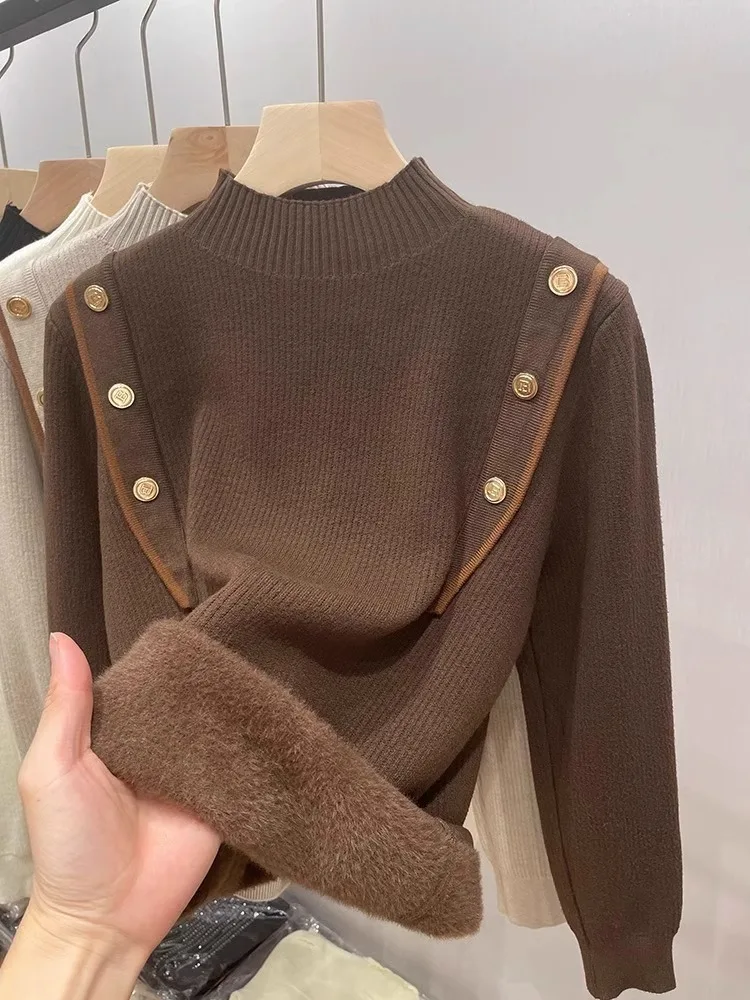 Women's Fleece Sweater Shirt Fashionable Long Sleeve Stringy Knitted Solid Casual for Women