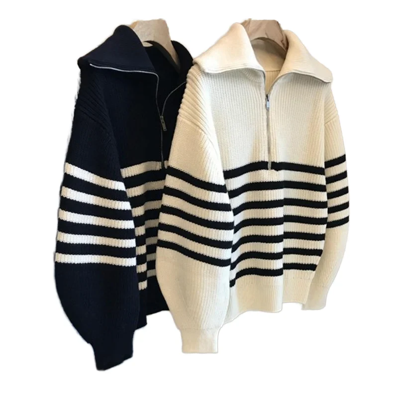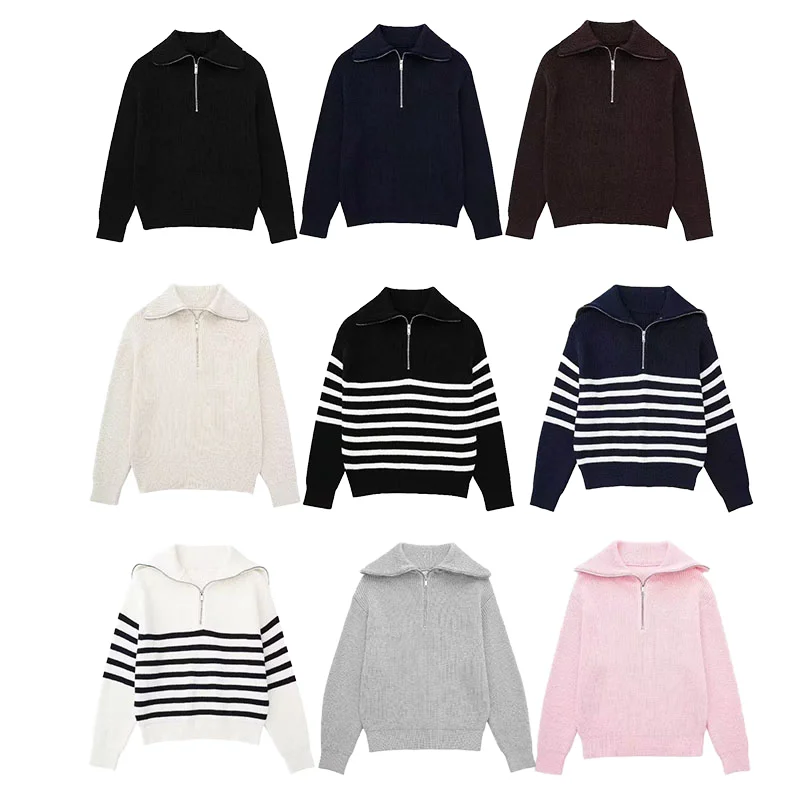 Women's Casual Pullover Winter Autumn Fashion Hot Zipper Breathable Wholesale Knit Pullover for Women