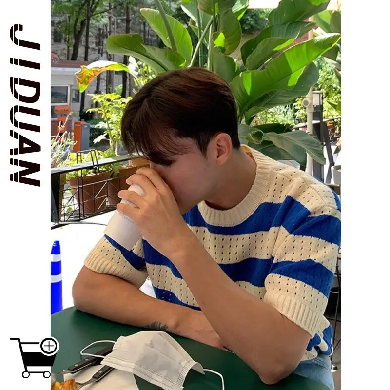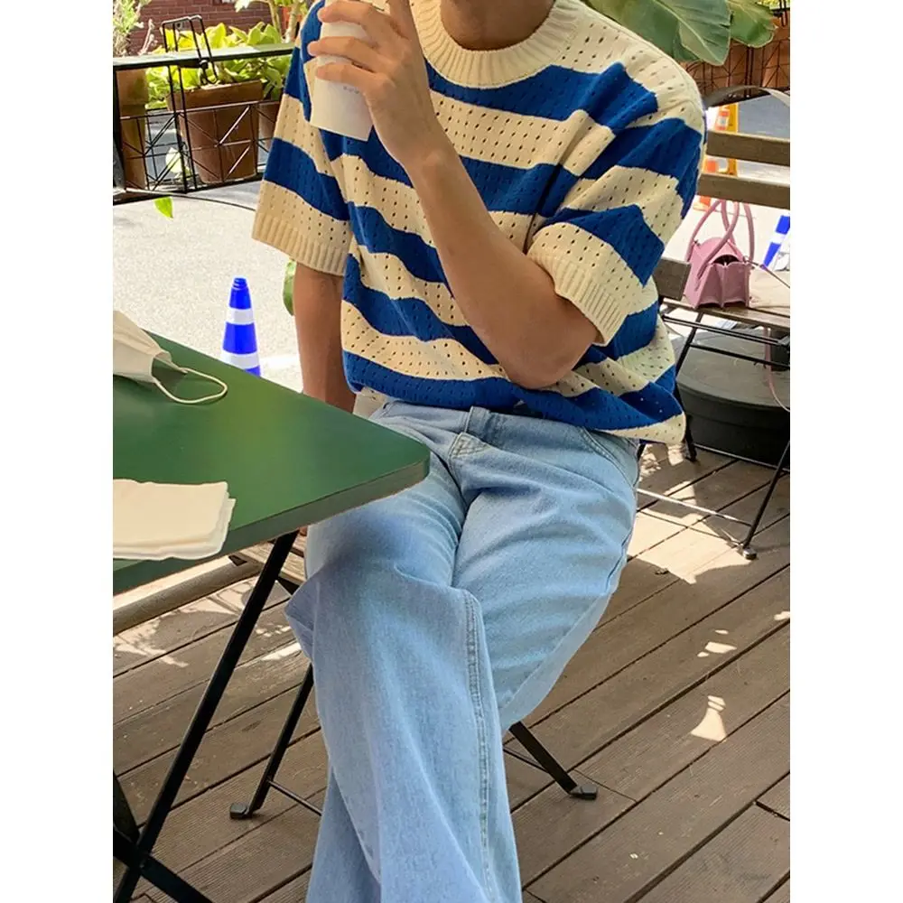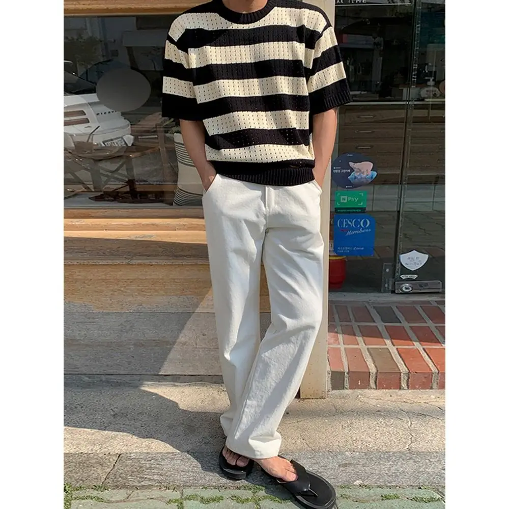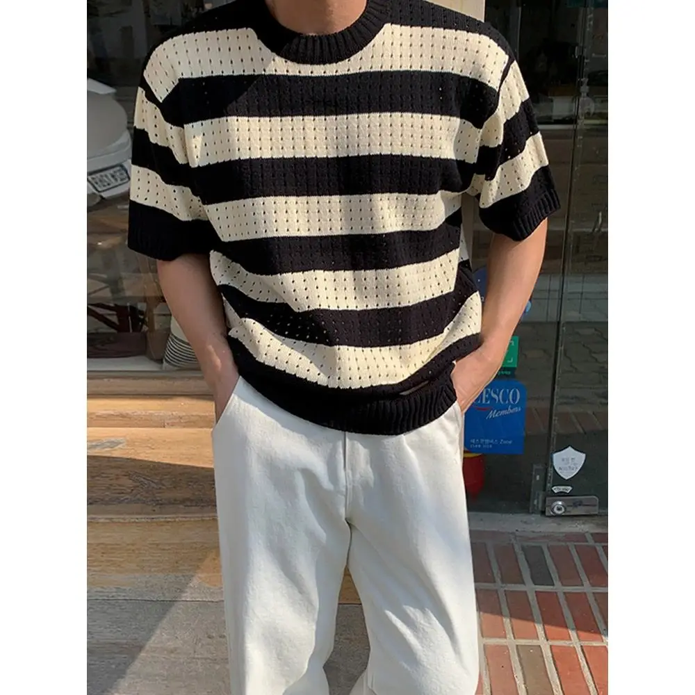 Summer Slim Loose Versatile Short-sleeved T-shirt Fashion Knitted Polo T-shirt for Men