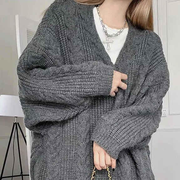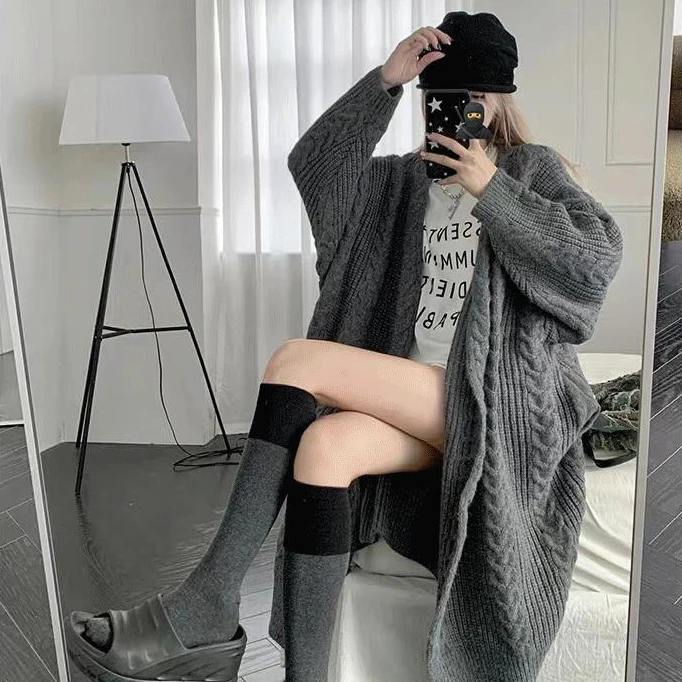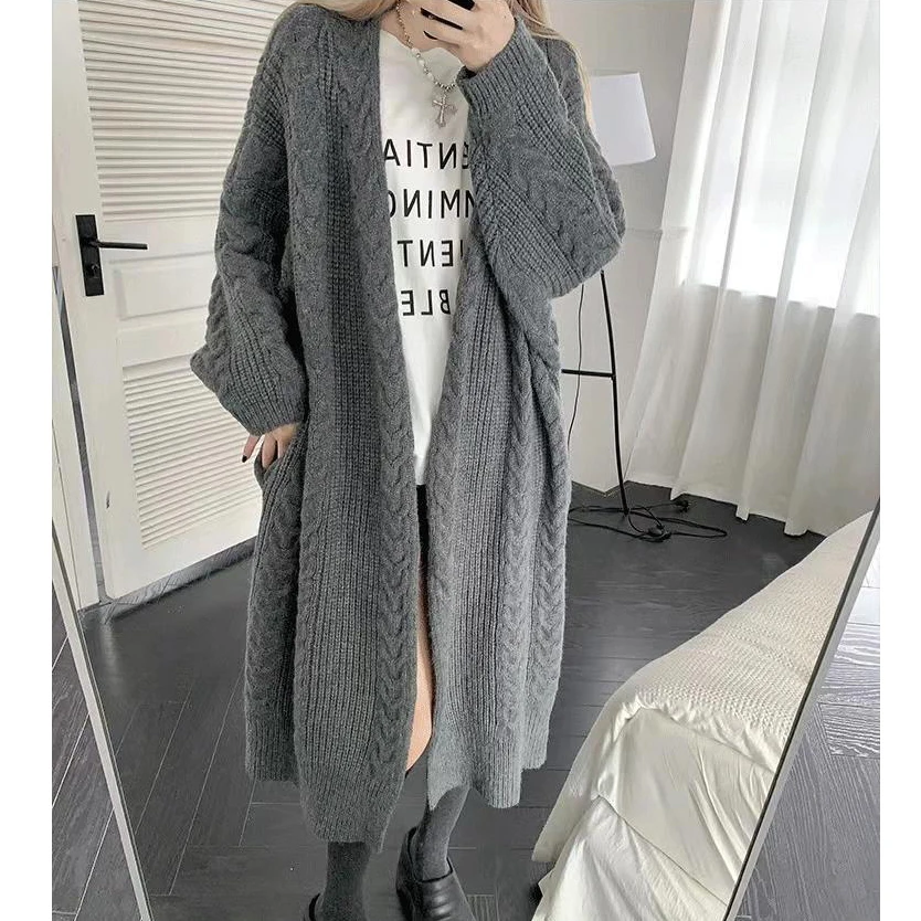 2024 New Spring and Fall Loose Thin Medium-length Thickened Sweater Coat Fashion Knitted Cardigan Female
