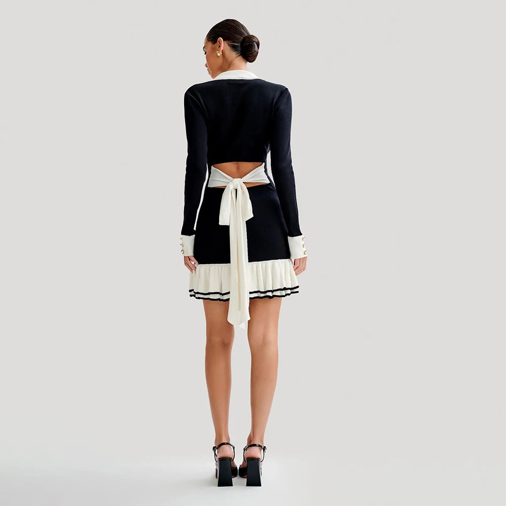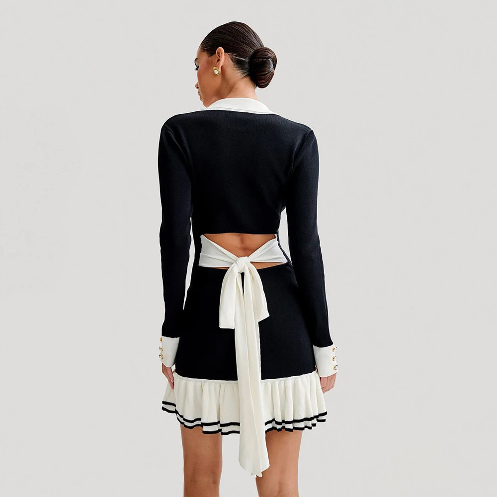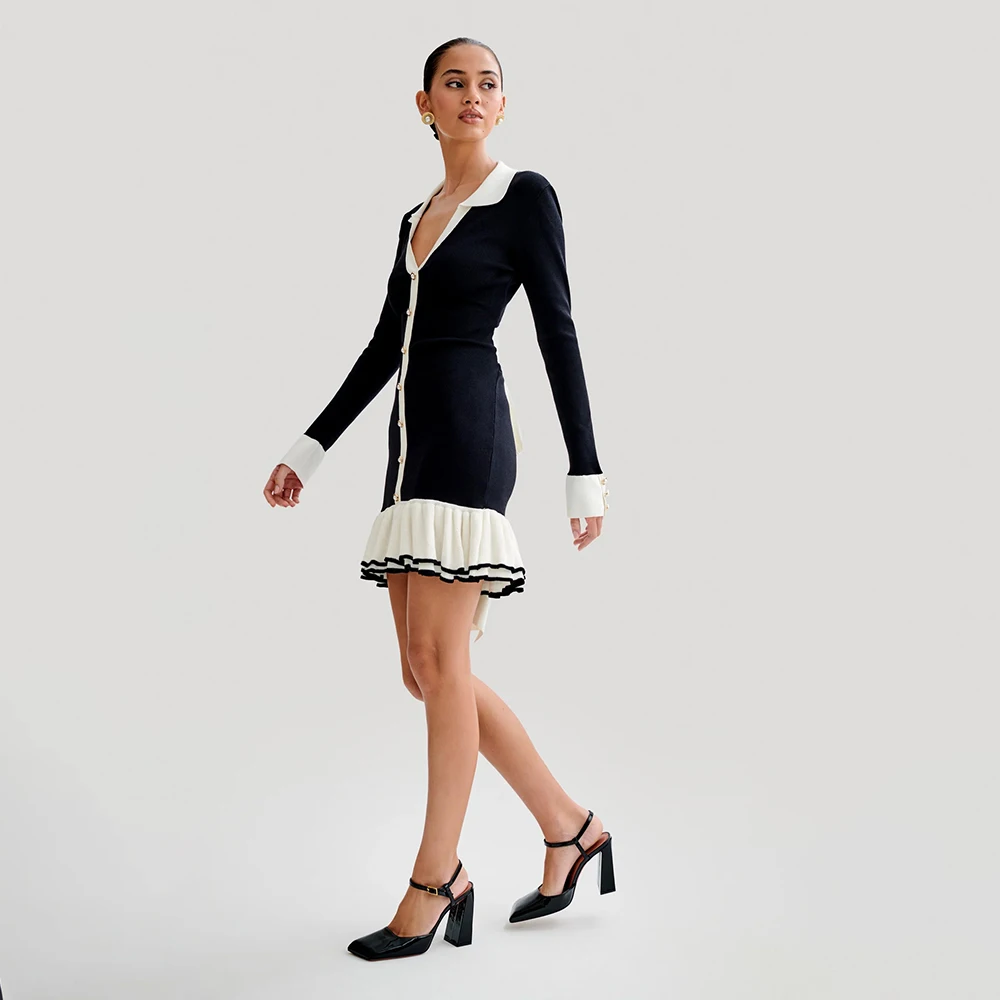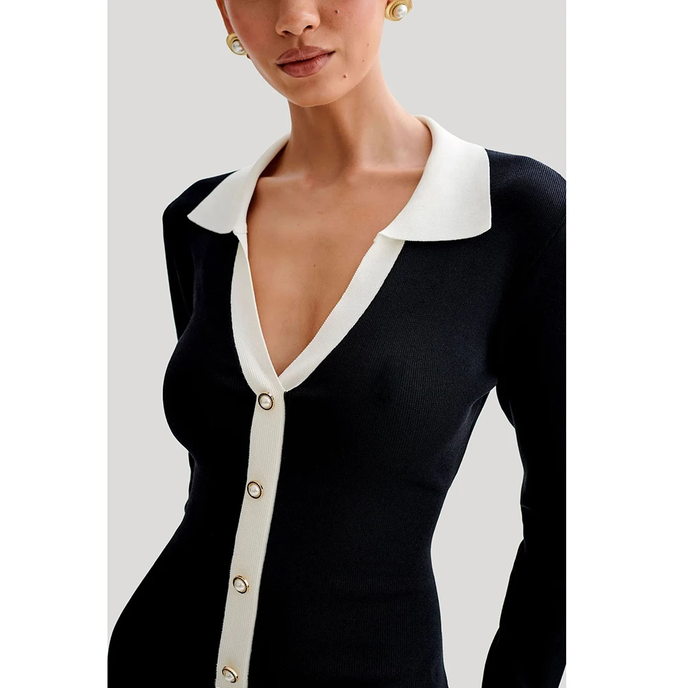 Spring and Autumn Long Sleeve Knit Dress Elegant Solid Color Pearl Button Knitted Sweater Dress Knitted Dress for Women