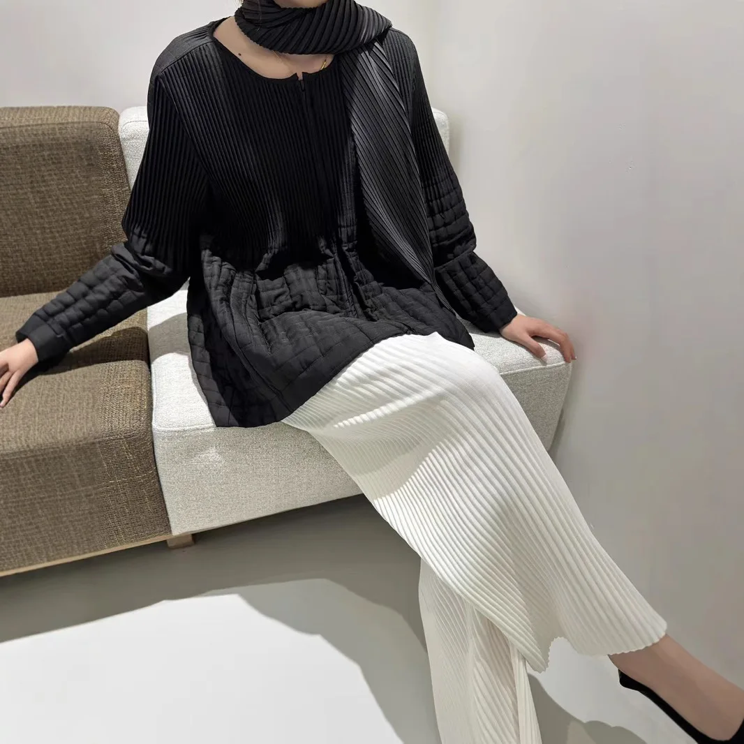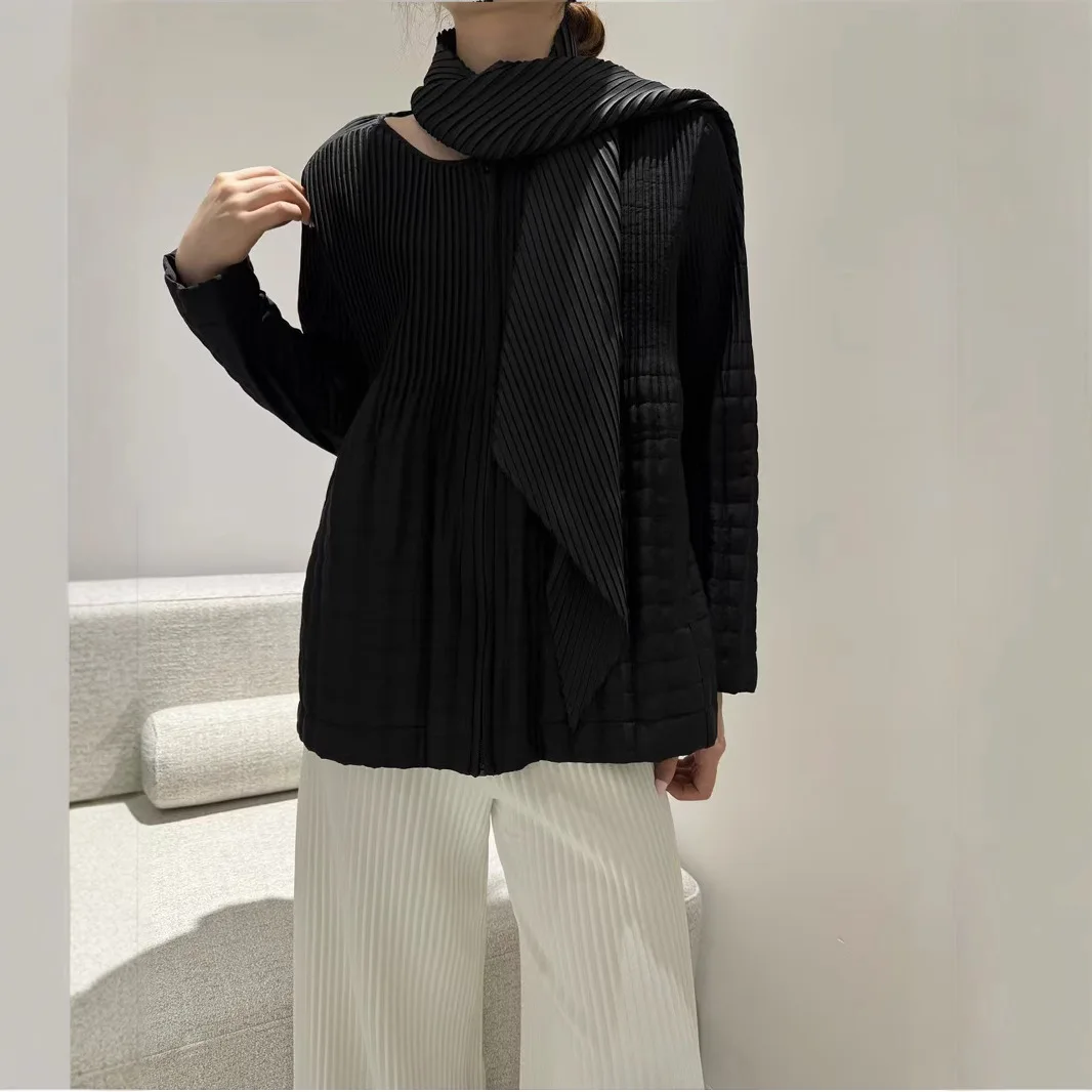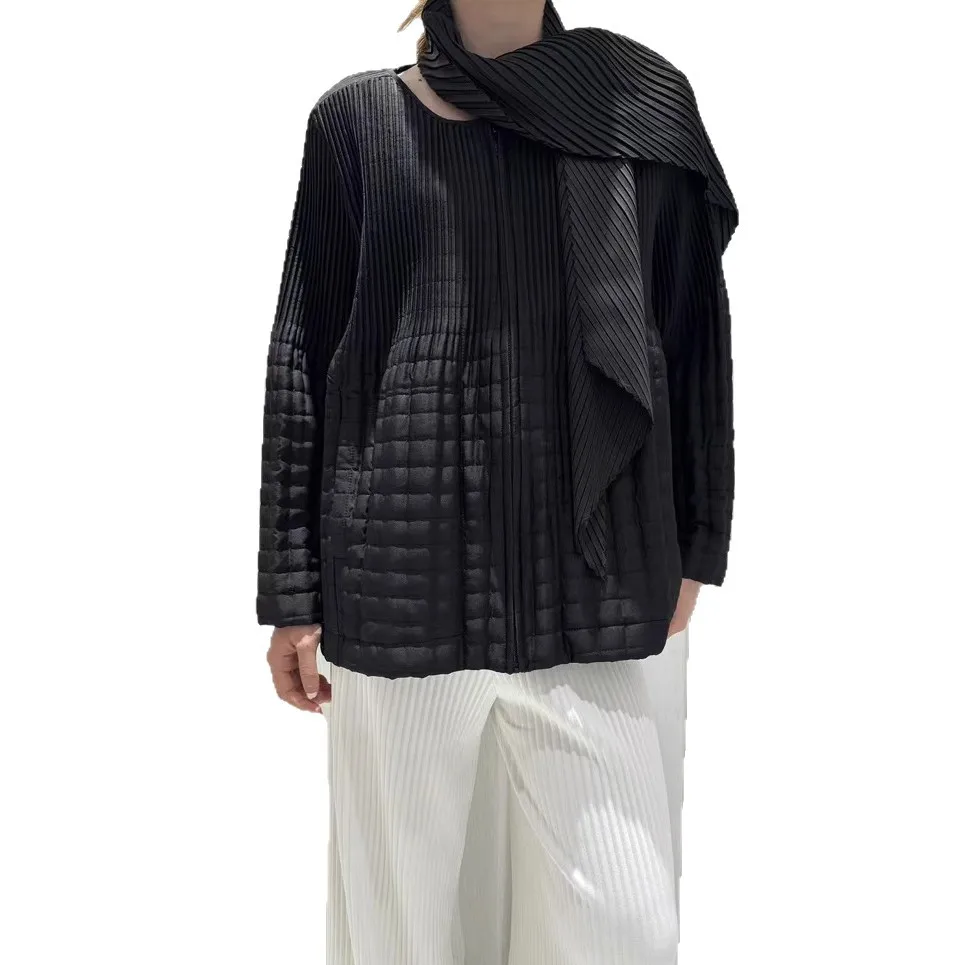 Factory Direct High Quality Chic Fashion Women's Cotton Coat Miyake Pleated Clothing with Polyester Lining Casual Outerwear