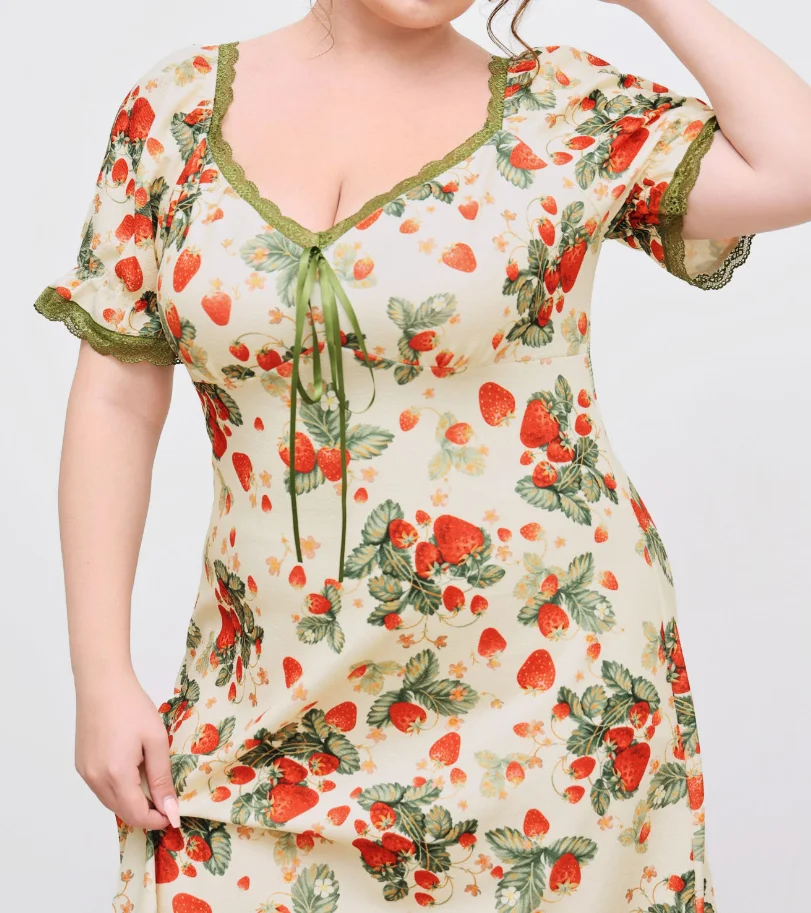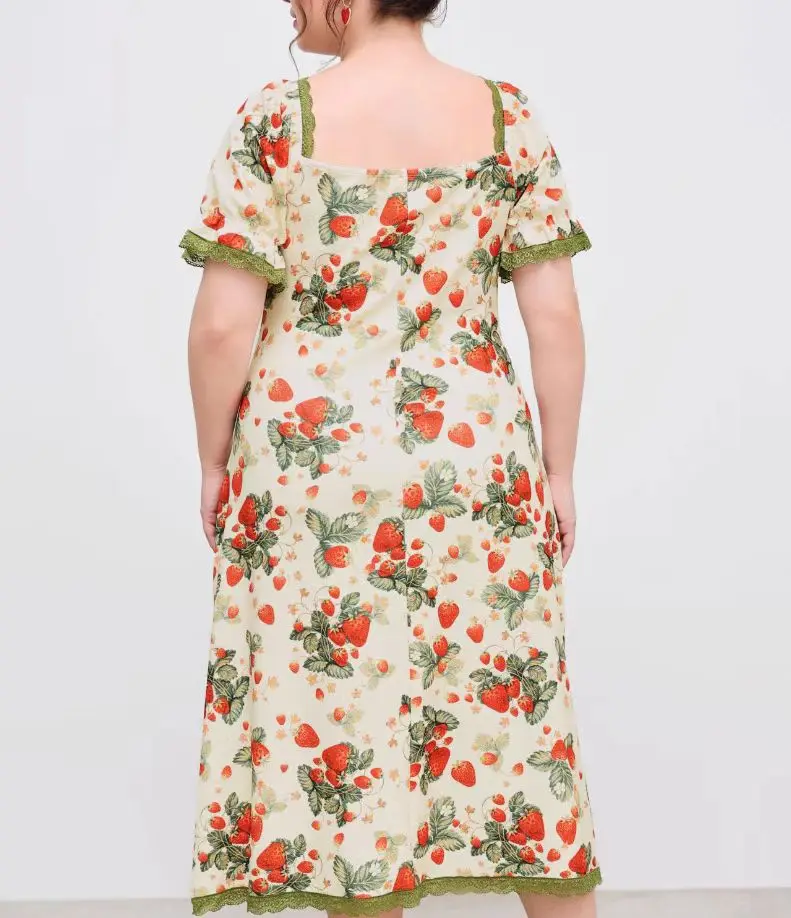 Flower Print Lady Dress Plus Size Dress Fashionable Midi Dress