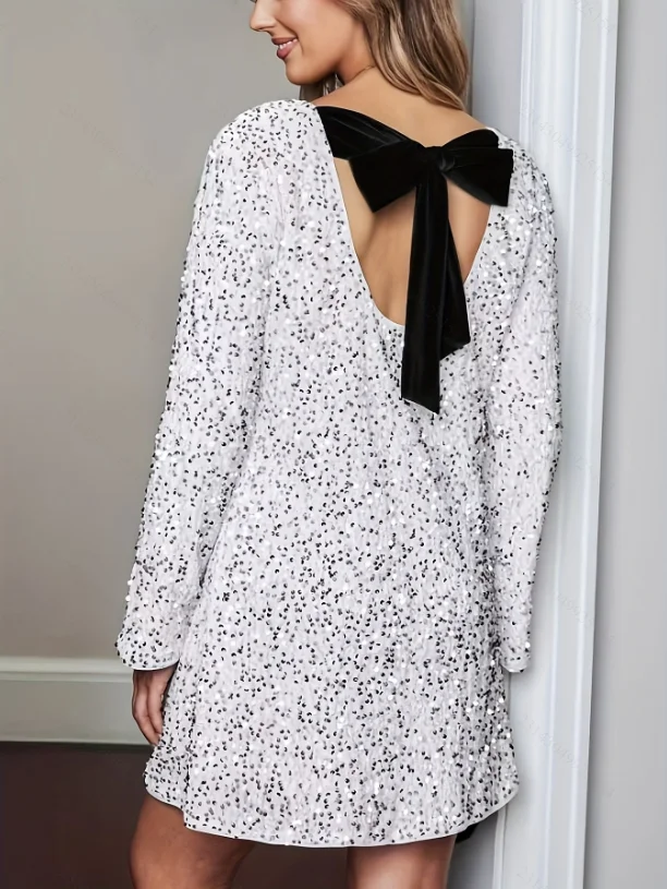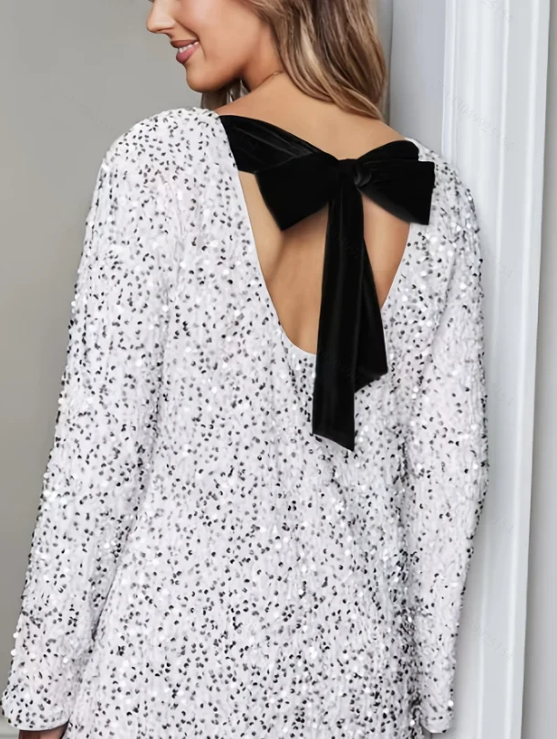 Vintage Casual Long Sleeve Above Knee Dress with Sequin Bow Breathable Streetwear Style Summer ODM Supply