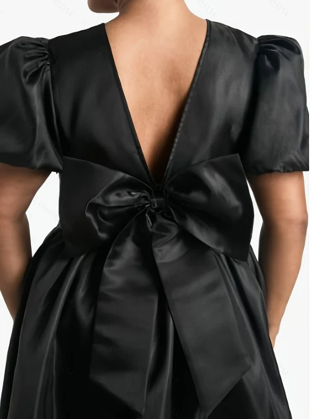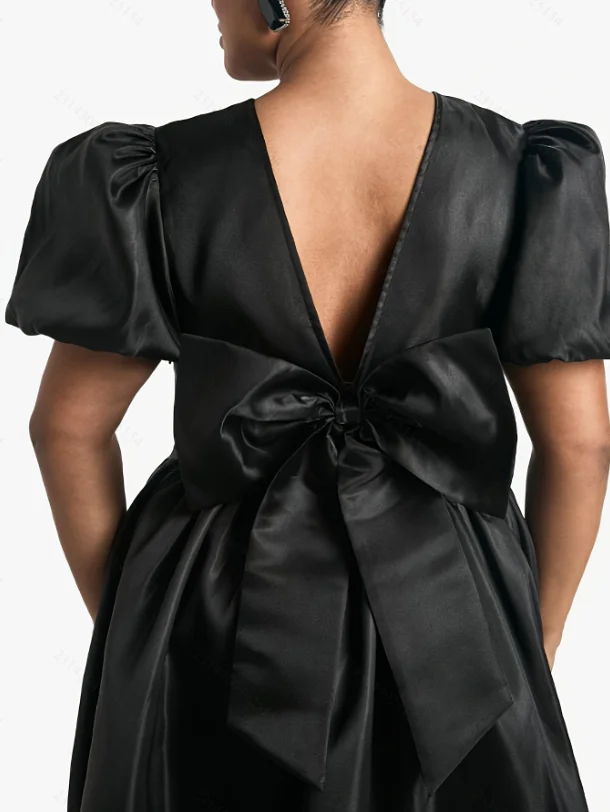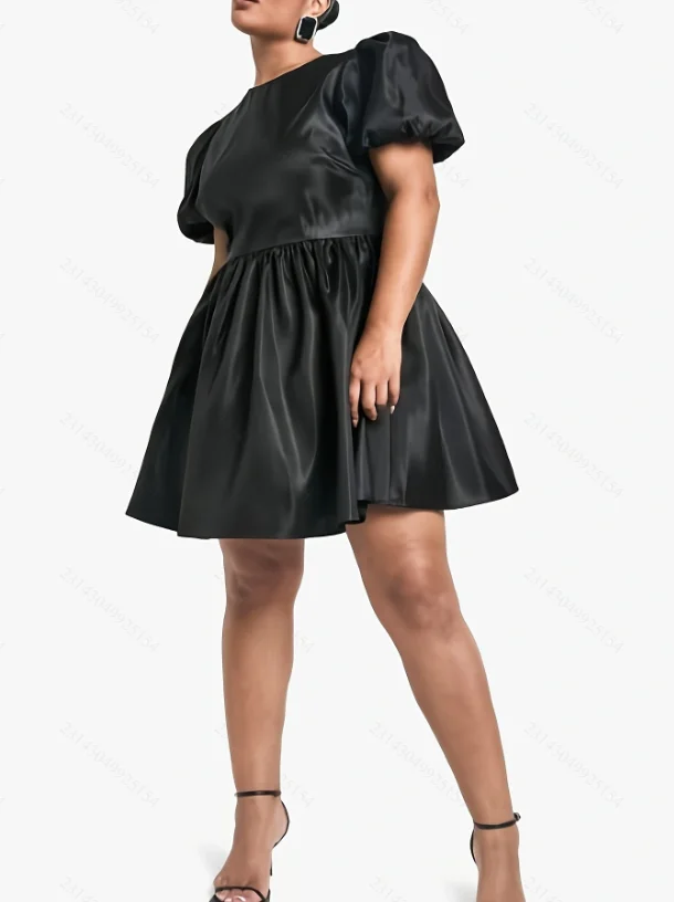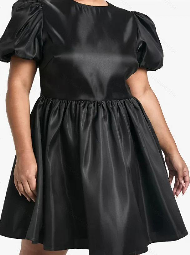2025 Summer New Plus Size Women's Puff Sleeve Dress Black High Quality 4XL Available