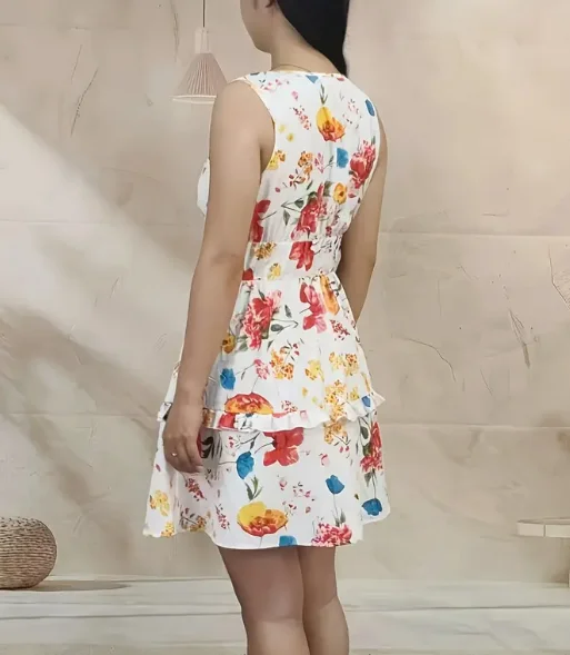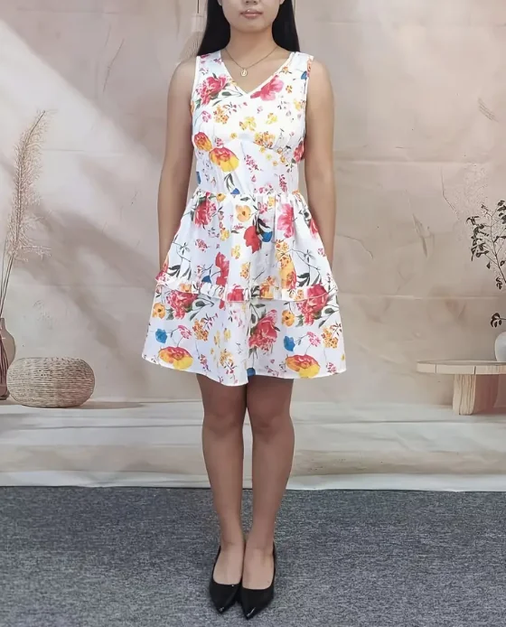 2025 Midi Dress V-neck Breathable Floral Print Women's Leisure Holiday Dress Natural Waistline New Summer Collection