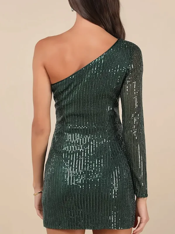 Women's Green Sequin A-Line Party Glitter Bodycon Mini Dress Above Knee Natural Waist Sequined Summer