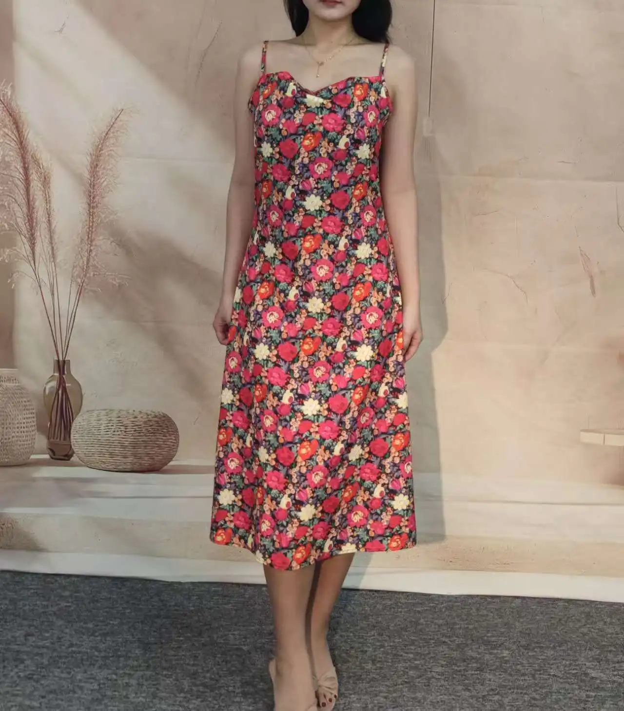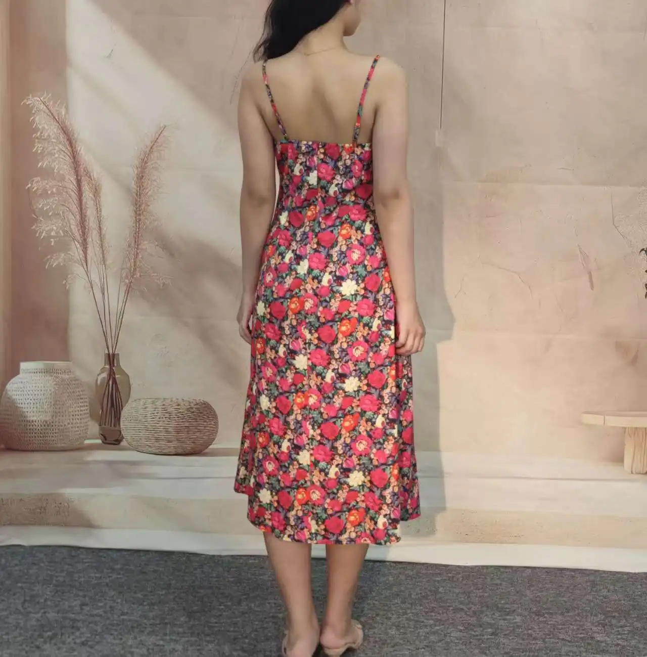 Red Women's Elegant Spandex Maxi Dress Holiday Print Wrap-Chest Casual Style with Collarless Neckline