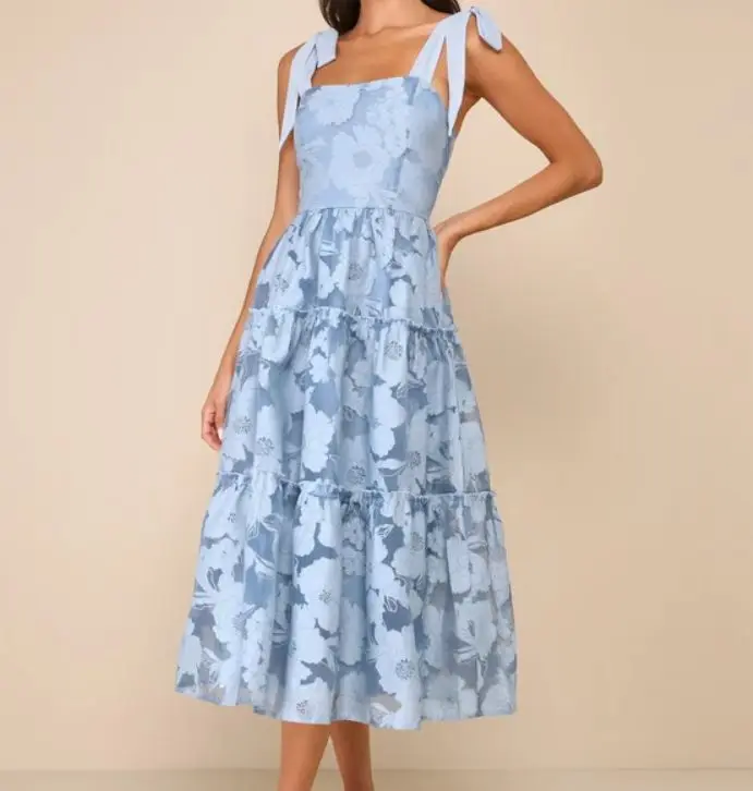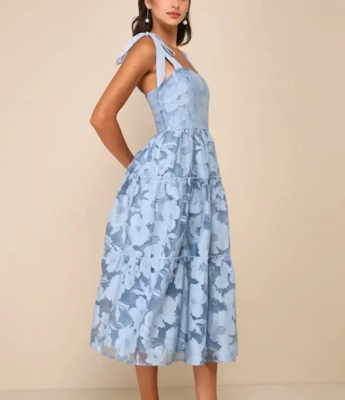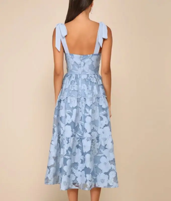 Women's Summer Purple Midi Slim Empire Dress Off-Shoulder Embroidered Halter Backless Ruched Spaghetti Strap Bow Sweet ODM