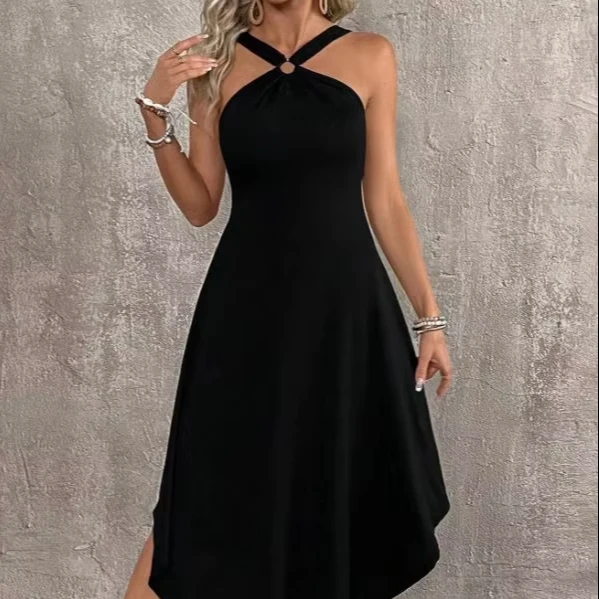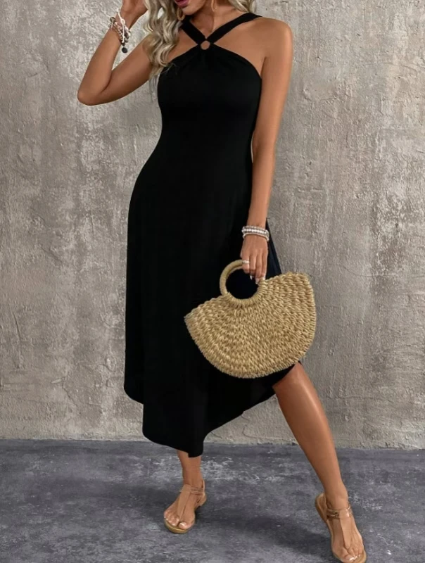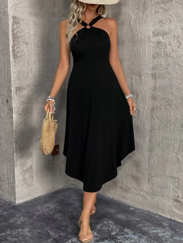Women's Black Halter Midi Maxi Prom Dress Ladies Casual Summer OEM ODM Services Fancy Western Style Dresses