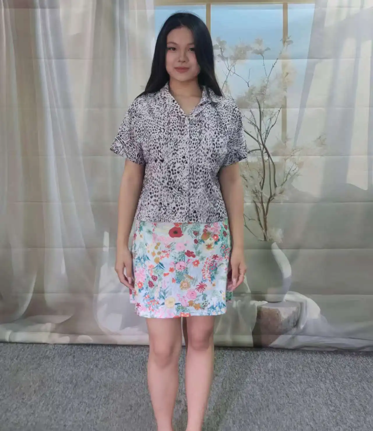 Women's Casual Polyester Blouse in Hawaiian Style Floral Print Breathable Woven Top with Button Decoration for Summer