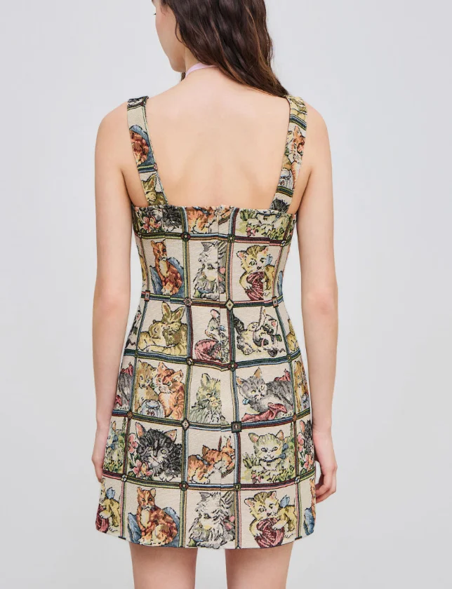 Women's Retro Vintage Midi Dress Square Collar Natural Waist Mini Casual One Size Fit Digital Printing